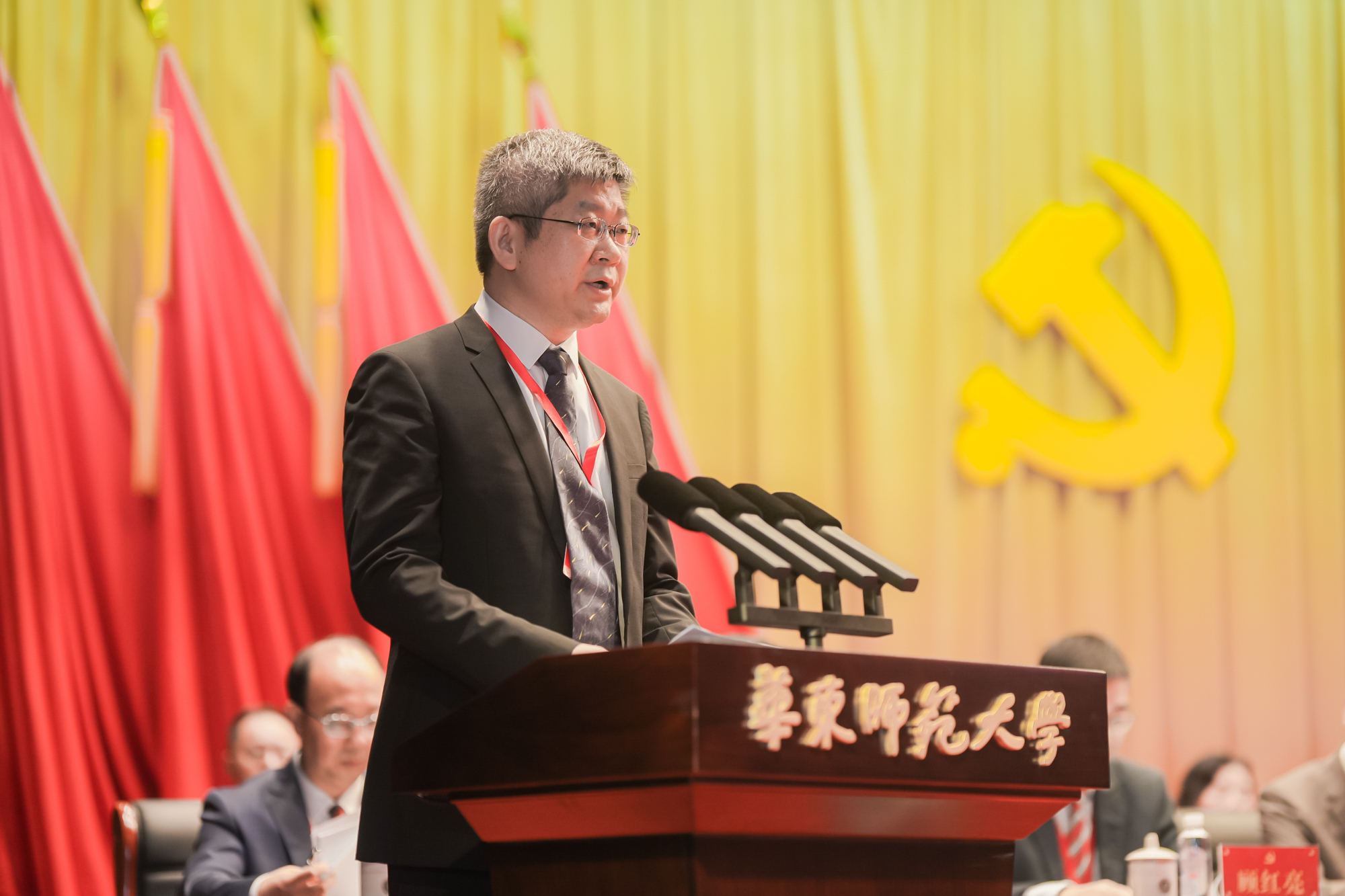 沈炜同志代表上海市教卫工作党委、上海市教育委员会讲话。他高度评价华东师大自学校第十三次党代会以来取得的改革发展成绩。他指出,华东师大实施一系列重大措施,坚定不移走高质量发展之路,推动“双一流”建设取得重要进展,在若干重点领域和关键环节迈出了重大步伐,取得了丰硕的办学成果,为国家和上海城市发展作出了积极贡献。他表示,华东师大是上海高等教育重要组成部分,是上海教育的靓丽名片和城市软实力的重要体现。他就华东师大新一轮发展提出了三点建议:第一,要坚持党的全面领导,为学校事业发展提供坚强的政治保证、组织保证。第二,要坚持立德树人根本任务,培养堪当民族复兴大任的时代新人。第三,要坚持高质量创新发展,提升服务国家和城市重大战略的能级水平。他希望新一届党委班子团结带领全校党员和师生员工,锐意进取、开拓创新,为早日建成引领中国特色世界一流大学打下更加坚实的基础,为建设教育强国、科技强国、人才强国和具有世界影响力的社会主义现代化国际大都市作出新的更大贡献。