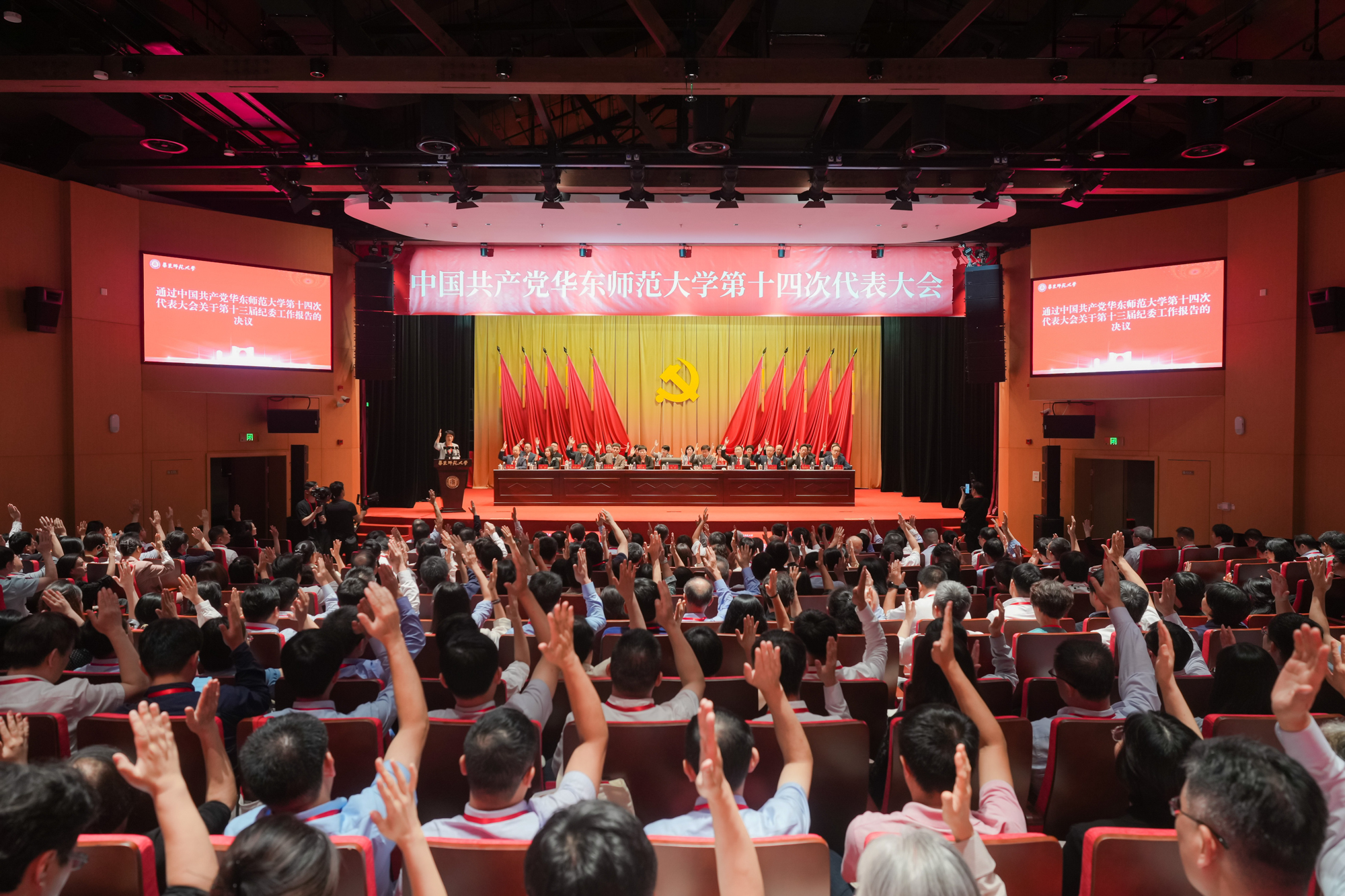 梅兵表示,学校发展蓝图的实现,离不开全体师生员工的共同努力和一代代师大人的接续奋斗。学校新一届党委、纪委深感使命光荣、责任重大,将认真履职尽责、主动担当作为,不畏艰难、不负重托。我们坚信,在习近平新时代中国特色社会主义思想的指导下,有党中央、教育部和上海市的坚强领导,有学校历届党委班子打下的坚实基础,有全体党员干部的模范带头,有全校师生员工的同心协力,我们一定能够将大会描绘的美好愿景加快转化为“施工图”“实景画”,向着学校第十四次党代会确定的目标任务扎实迈进。