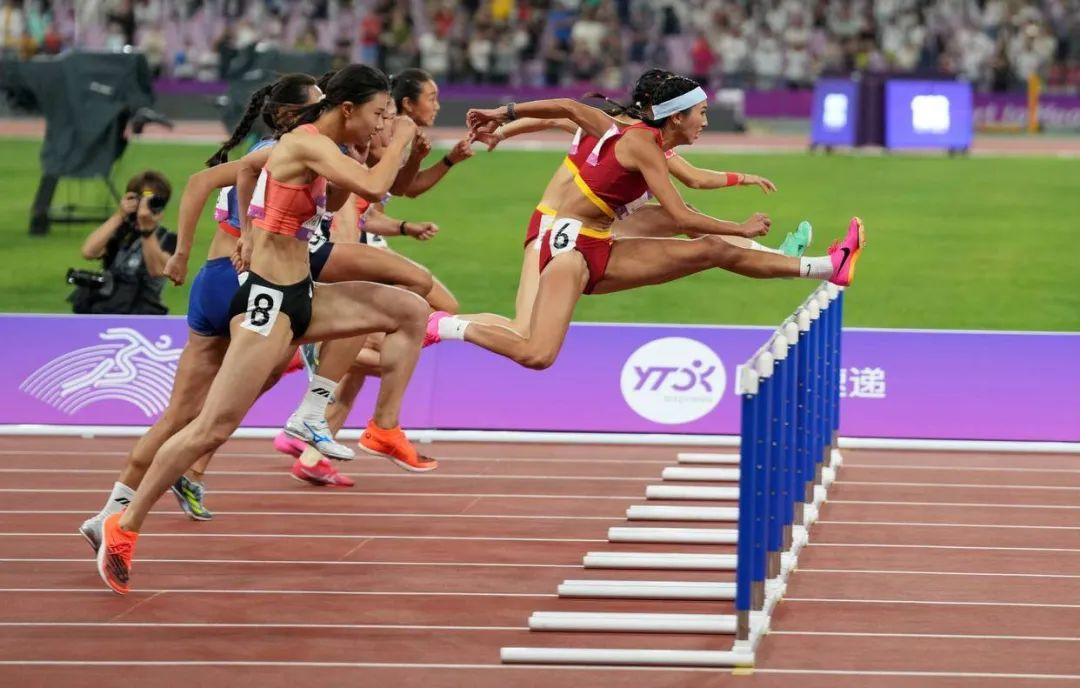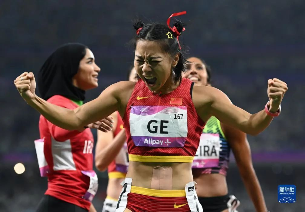 在10月1日晚上的亚运会田径女子100米栏决赛中,3245澳门新莆京2019级体育教育专业本科生林雨薇,作为华东师大田径队的杰出选手展现了卓越的运动天赋和坚韧不拔的竞技精神,以一贯的努力和专注凭借出色的跑道技巧和超强的爆发力率先冲线,以12秒74的成绩夺得冠军,达到了巴黎奥运会参赛标准。