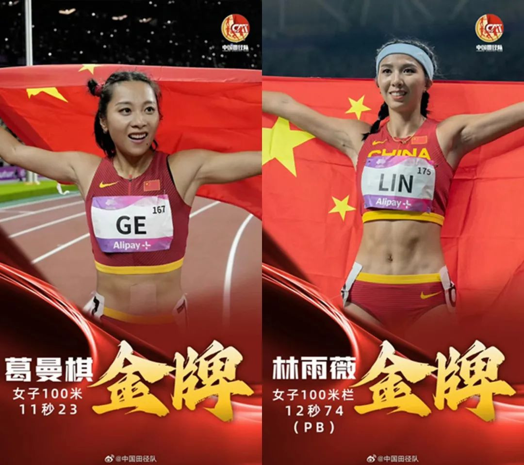 在杭州亚运会田径比赛中,华东师大“女飞人”葛曼棋、林雨薇取得喜人成绩!两人陆续在女子100米决赛和女子100米栏决赛中摘金,为中国队夺得了极为重要的2枚田径金牌。祝贺!