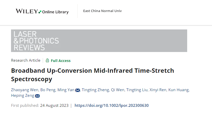 相关成果以Broadband Up-Conversion Mid-Infrared Time-Stretch Spectroscopy为题在国际期刊Laser & Photonics Reviews在线发表。闫明研究员、曾和平教授为通讯作者,研究生温兆阳为本文第一作者。