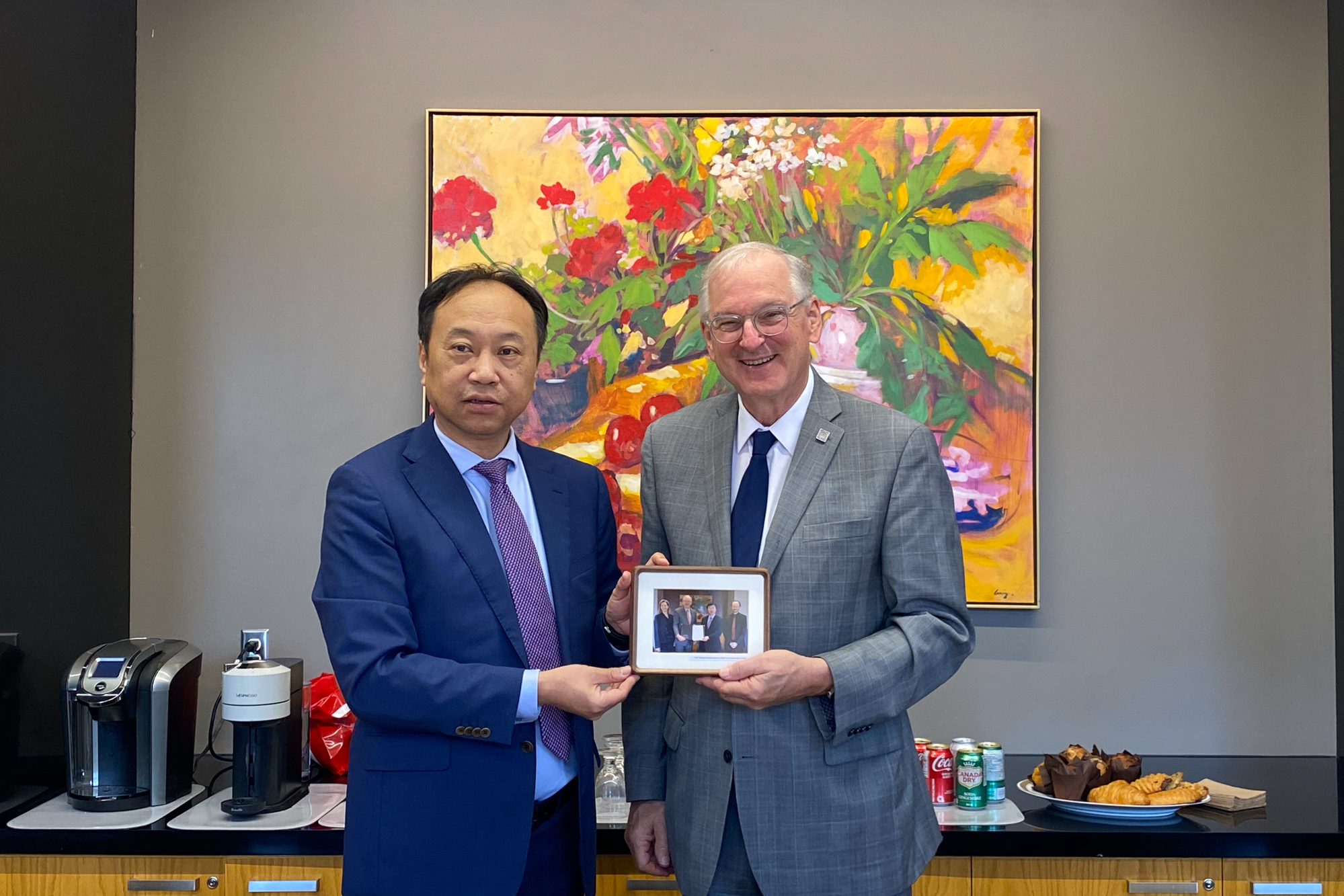 在加期间,戴立益一行到访中国驻加拿大大使馆,拜会丛培武大使,就中加两国如何通过教育合作促进人文交流和民心相通分享了合作经验与未来展望。丛培武大使高度评价并感谢华东师大为推动中加交流所作的贡献,表示将全力支持华东师大与加拿大高校和研究机构开展交流合作。