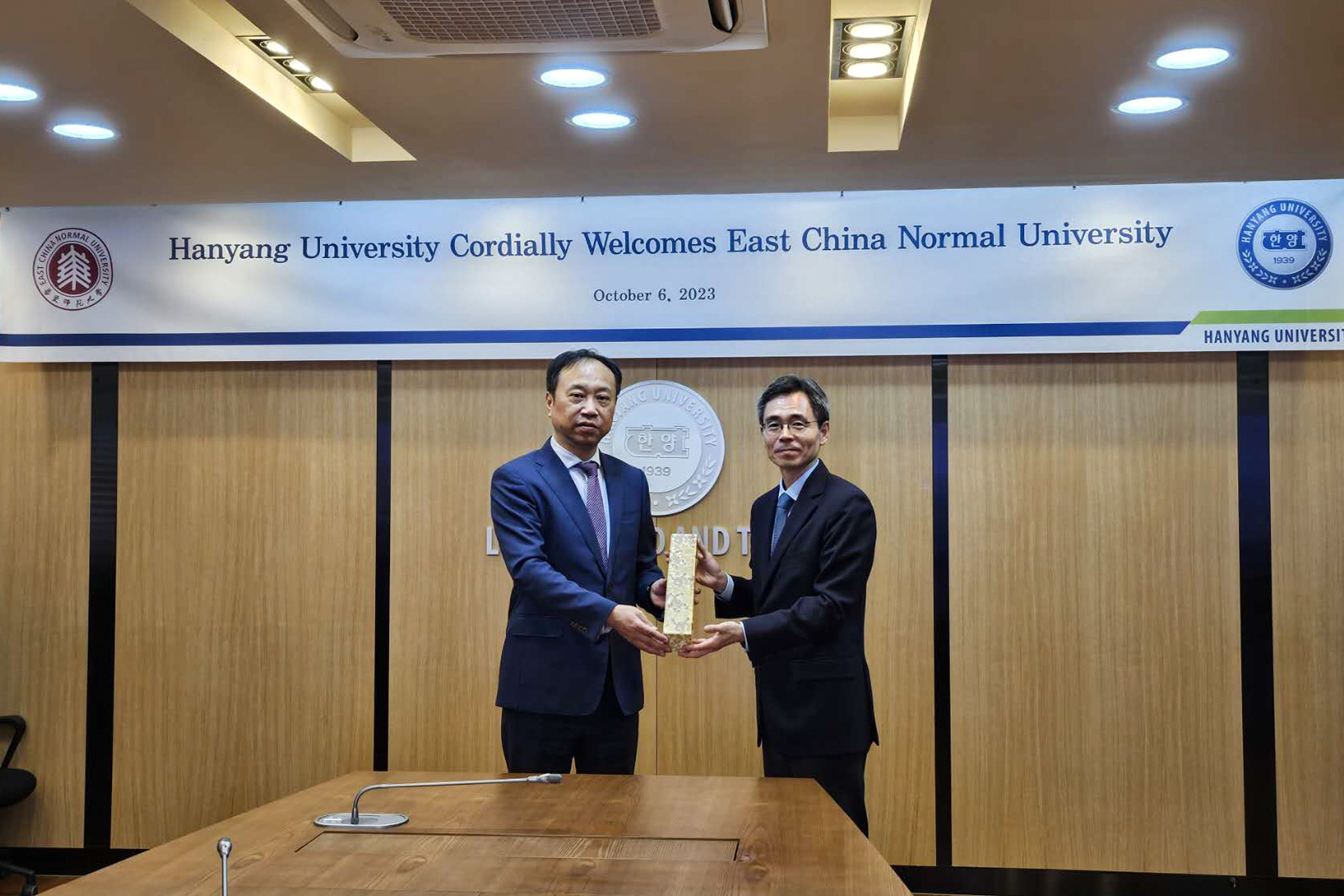 在韩国期间,代表团一行访问汉阳大学。戴立益与汉阳大学外事副校长Kim Hansung亲切会面,双方介绍了各自学校近期发展情况,并就两校在学生交换、硕博士联合培养、设立联合科研平台等方面展开深入交流。代表团还参观了汉阳大学校史馆、学生餐饮中心及活动中心。