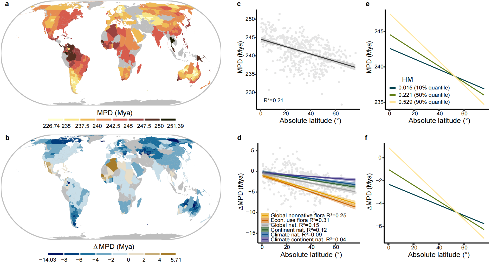 图3:外来归化种和本地物种亲缘关系的纬度梯度格局
