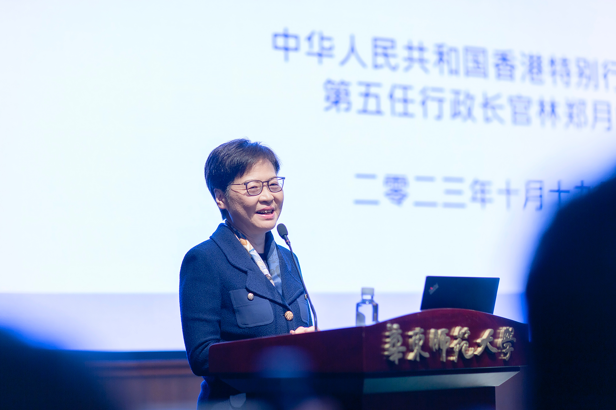 报告会前,梅兵书记、钱旭红校长在丽娃河畔博群堂与林郑月娥女士进行了亲切会谈,欢迎林郑月娥女士的到访并介绍了学校历史沿革、学科特色以及与香港特区教育与合作交流的情况,重点介绍了学校在践行“育人、文明、发展”使命,以及在推进卓越育人、卓越学术、卓越服务,加快建设引领育人创新的中国特色世界一流大学方面的举措。