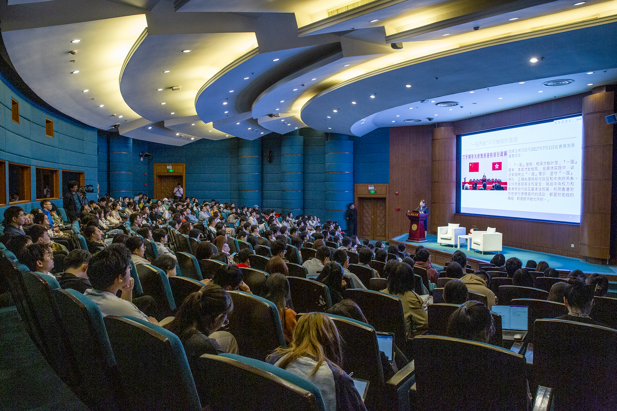 报告以《从二十大报告和两会精神看香港“一国两制”实践》为题。林郑月娥女士结合二十大报告和两会精神,阐述了“一国两制”产生的历史背景、由来与发展。同时,也深度剖析了“一国两制”在实践中遇到的困难。面对逆境,香港特区政府始终坚持和完善“一国两制”实践,通过建立和维护一系列法律制度、政策与措施,全面贯彻并长期坚持“一国两制”,开启了香港发展由治及兴的新征程、确定了香港发展的新局面与新未来。林郑女士特别提到了香港教育的机遇与挑战,同时,林郑女士向同学们介绍香港特区政府推行的多项人才计划,欢迎大家来港学习、实习、就业和发展。报告最后,她引用《李岚清教育访谈录》中“教育事业关乎国家民族的根本,地位之重,战线之长,困难之大,尤为甚也。”这句话勉励全体师生并祝愿3245澳门新莆京培养出更多心系祖国、精业济群的优秀人才。