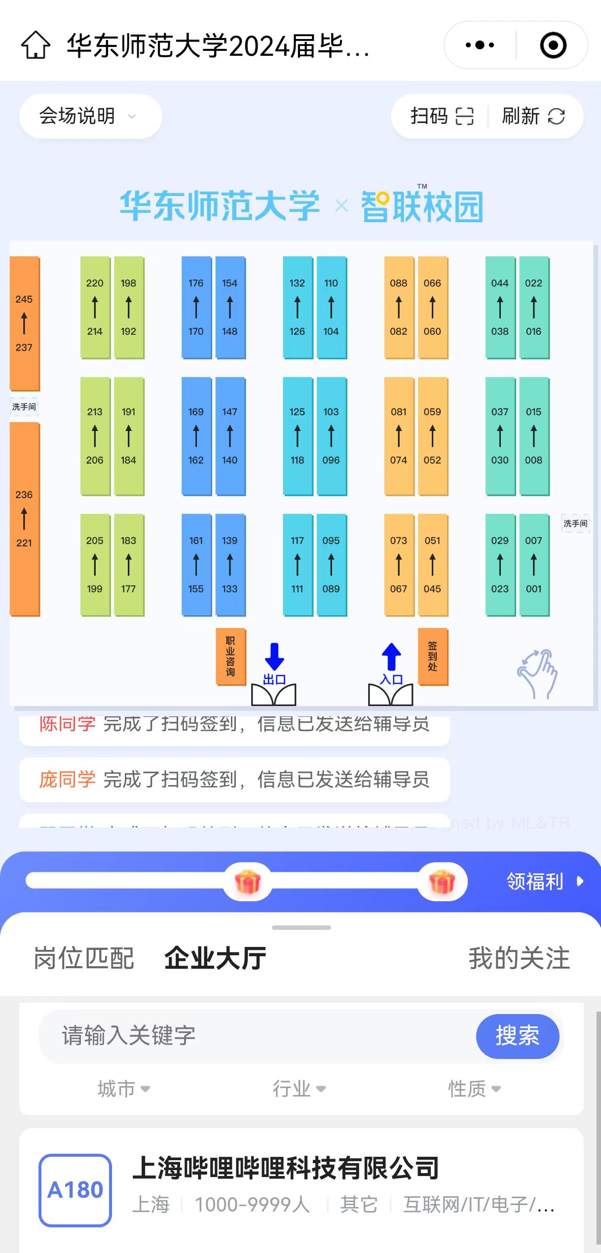 为提升招聘效率,本次招聘会创新性地使用了线上小程序,建立线上线下一体化链路,并采用专业大数据匹配企业+线下地图模拟形式,使学生提前了解企业展位和职位信息,提前锁定意向,提升求职竞争力。