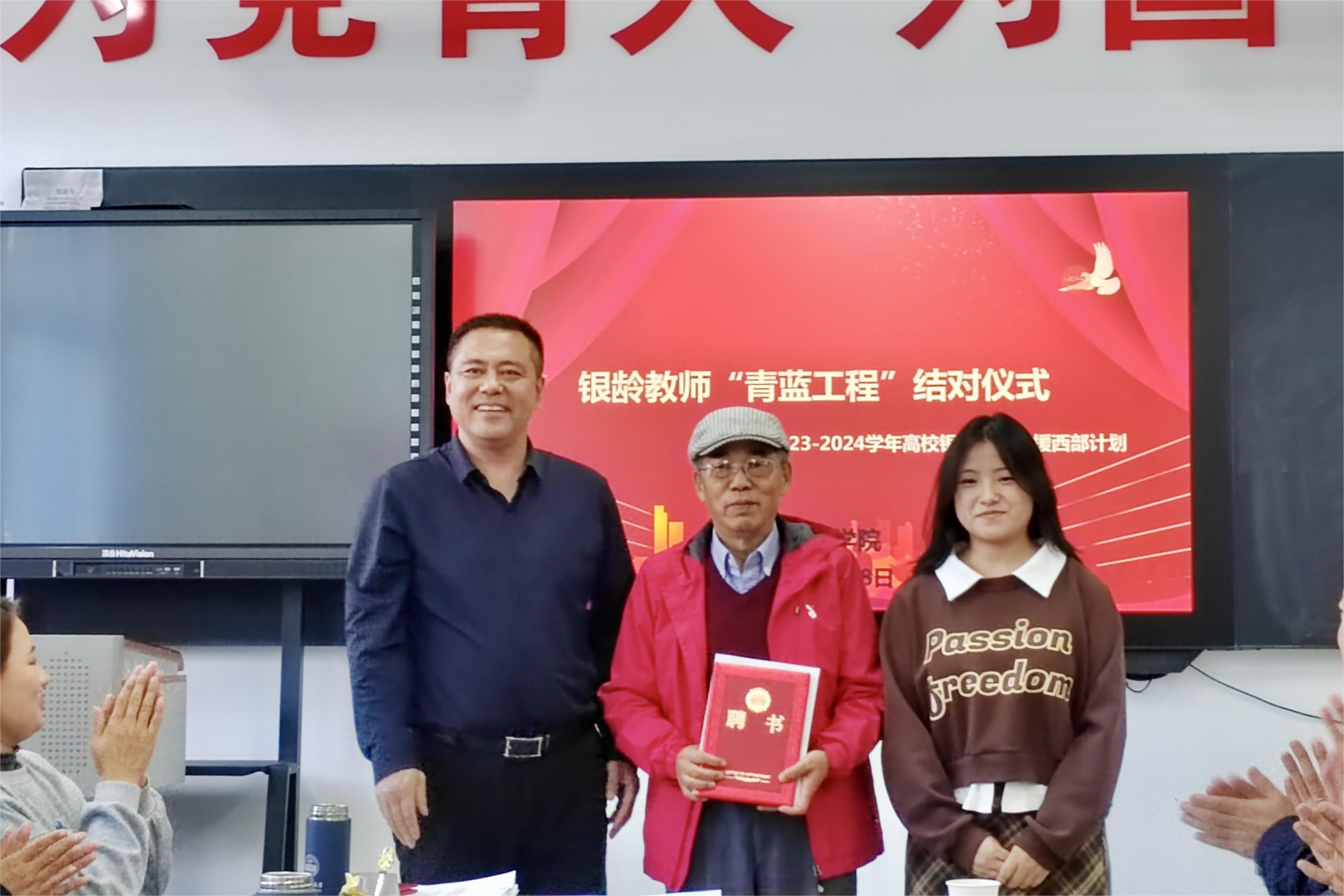 马庆发(中)受聘为伊犁师大教育科学学院“青蓝工程”指导老师