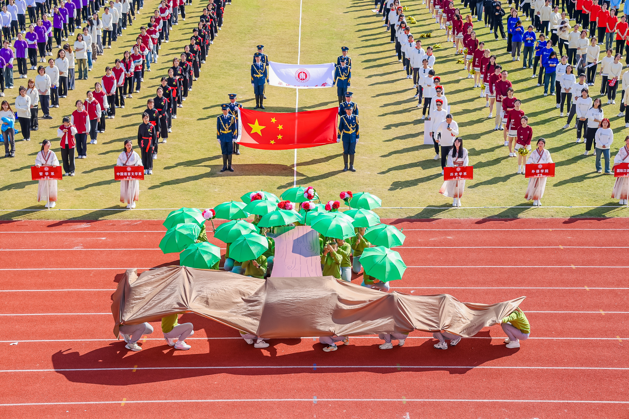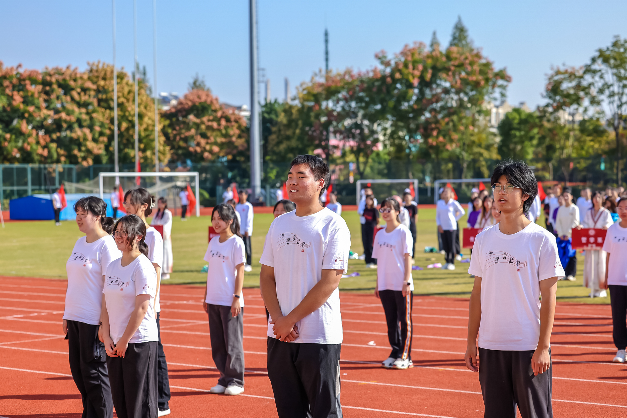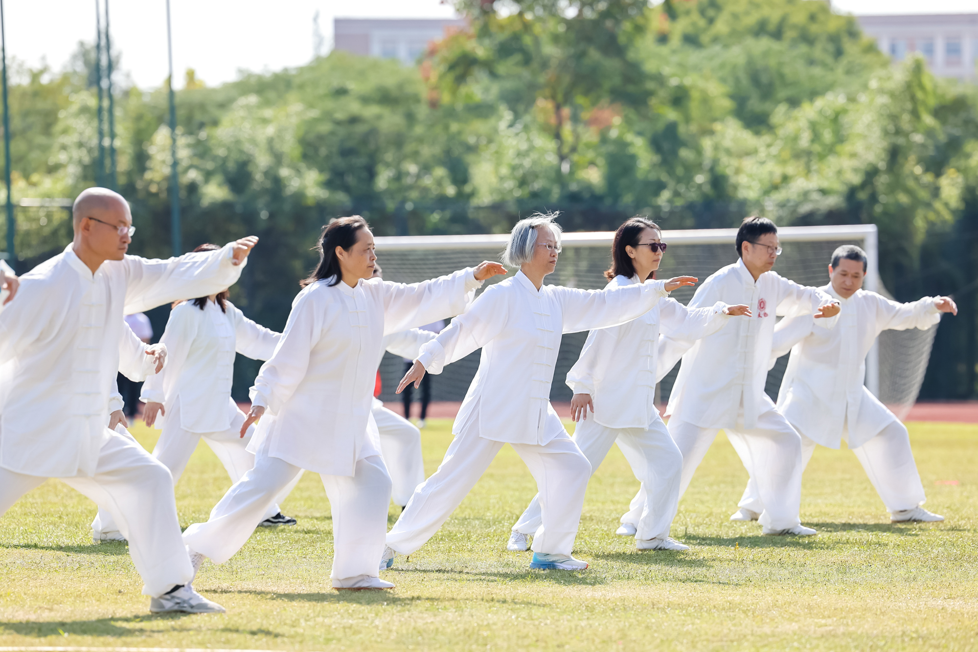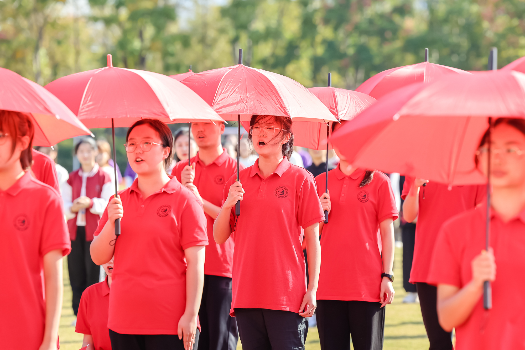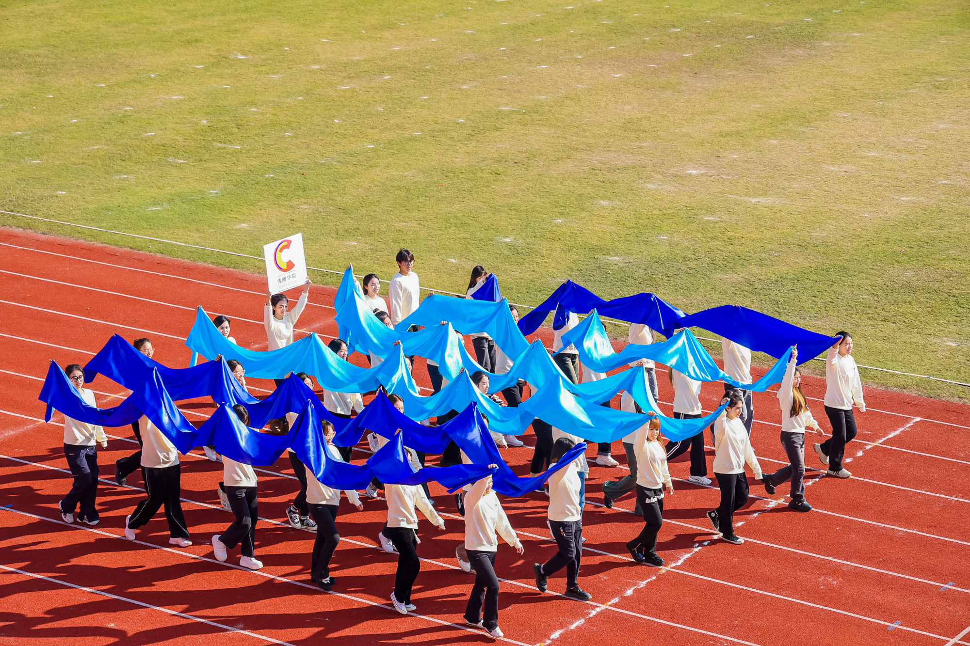 开幕式上还举行了学生代表队、教工代表队的广播操比赛,进行了学生团体操展示及教工太极拳表演。师生带着满满的参与感,为运动会开幕式增添了一层欢快热烈的气氛。本届运动会为期两天,运动员们将在校运会30余项比赛中展开角逐。