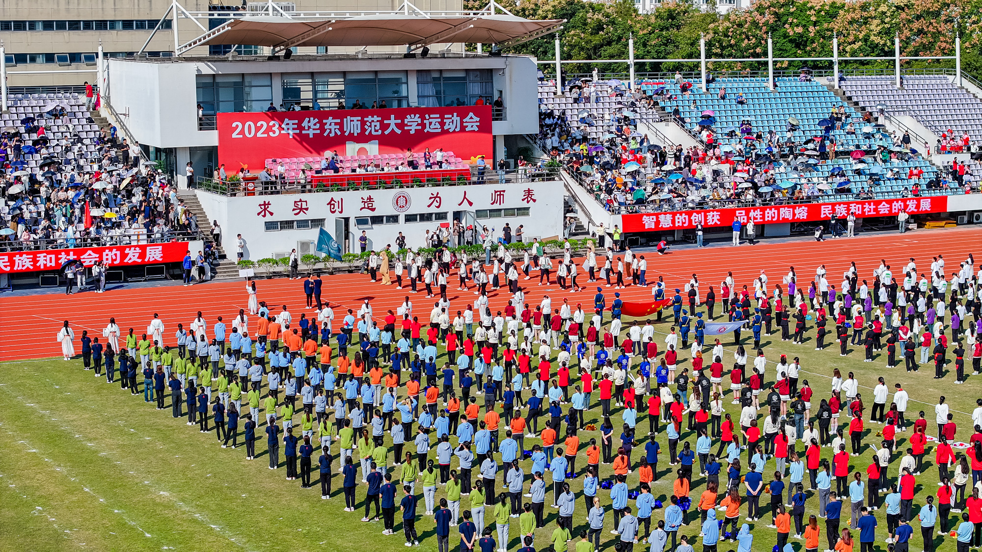 万里秋澄,惠风和畅,今日的华东师大活力四射,2023年华东师大运动会开幕式在闵行校区东区田径场举行。