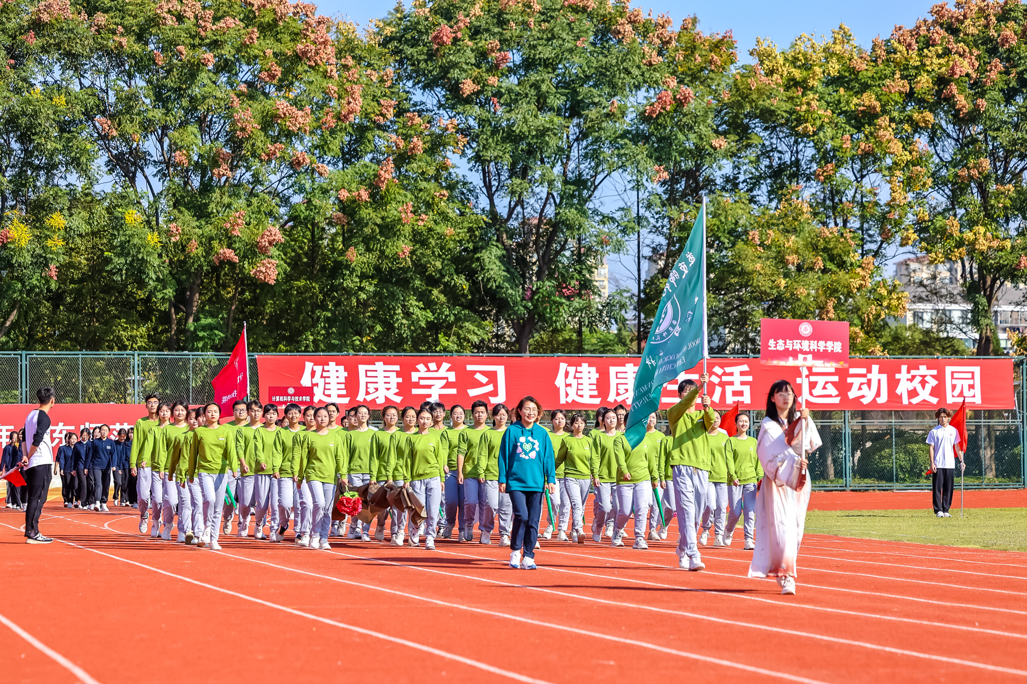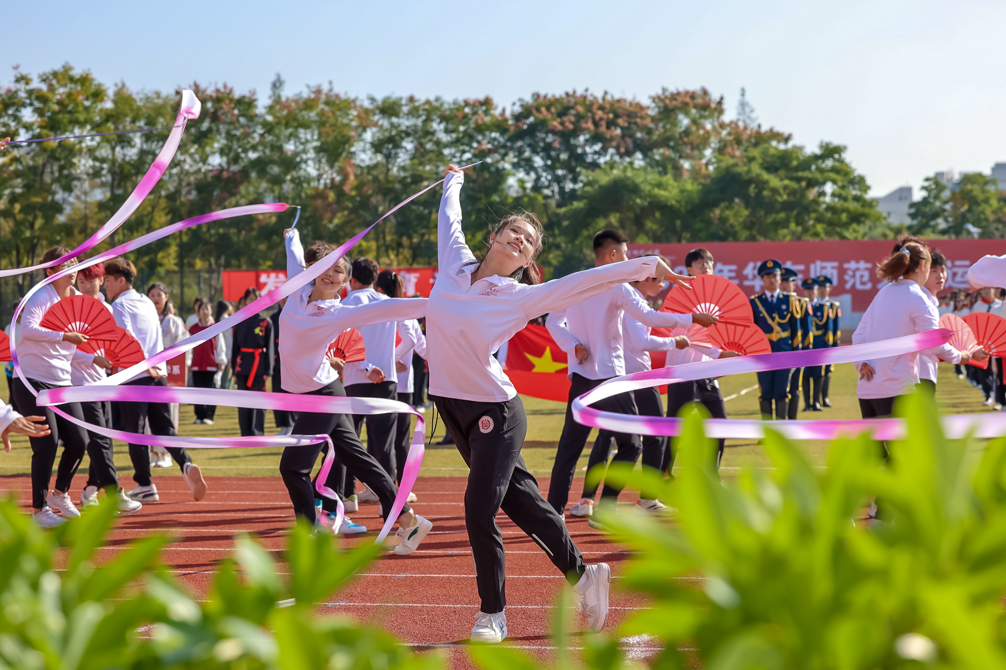 在开幕致辞中,校长钱旭红回顾了过去一年华东师大运动健儿在国内外赛场上的骄人战绩。在第25届CUBA中国大学生篮球联赛上,华东师大男篮创造队史最好成绩,首次闯入全国八强。在第31届世界大学生夏季运动会上,“眼镜侠”粟文夺得中国男子田径赛事首金。在刚刚过去的杭州亚运会中,华东师大健儿为中国代表队夺得了极为重要的3枚田径金牌。“小哪吒”葛曼棋在女子100米、女子4×100米两个项目中斩获金牌;“女飞人”林雨薇在女子100米跨栏项目中摘金。此外,健美操、啦啦操等项目在国内外赛事中也是捷报频传。
