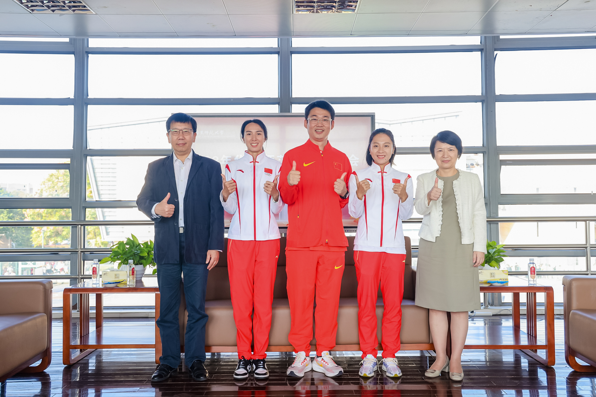 开幕式前,校领导与载誉归来的陈泷、葛曼棋、林雨薇座谈,鼓励大家继续努力,为国出战、为校增彩!