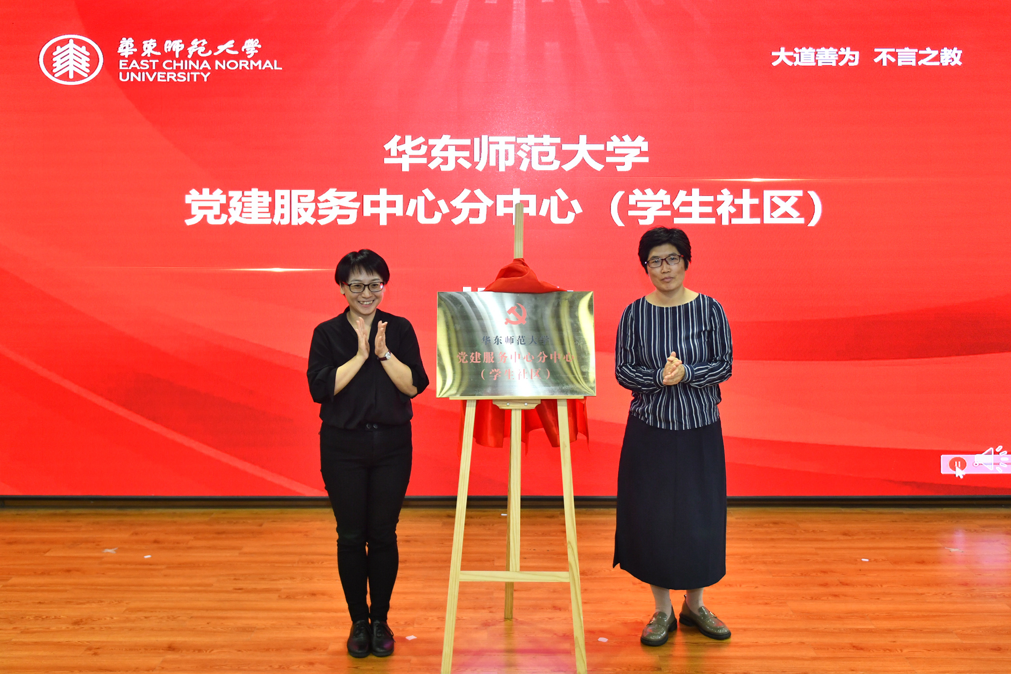 活动现场,校党委组织部副部长谭红岩、党委学生(研究生)工作部副部长杨艳红共同为华东师大党建服务中心分中心(学生社区)揭牌。