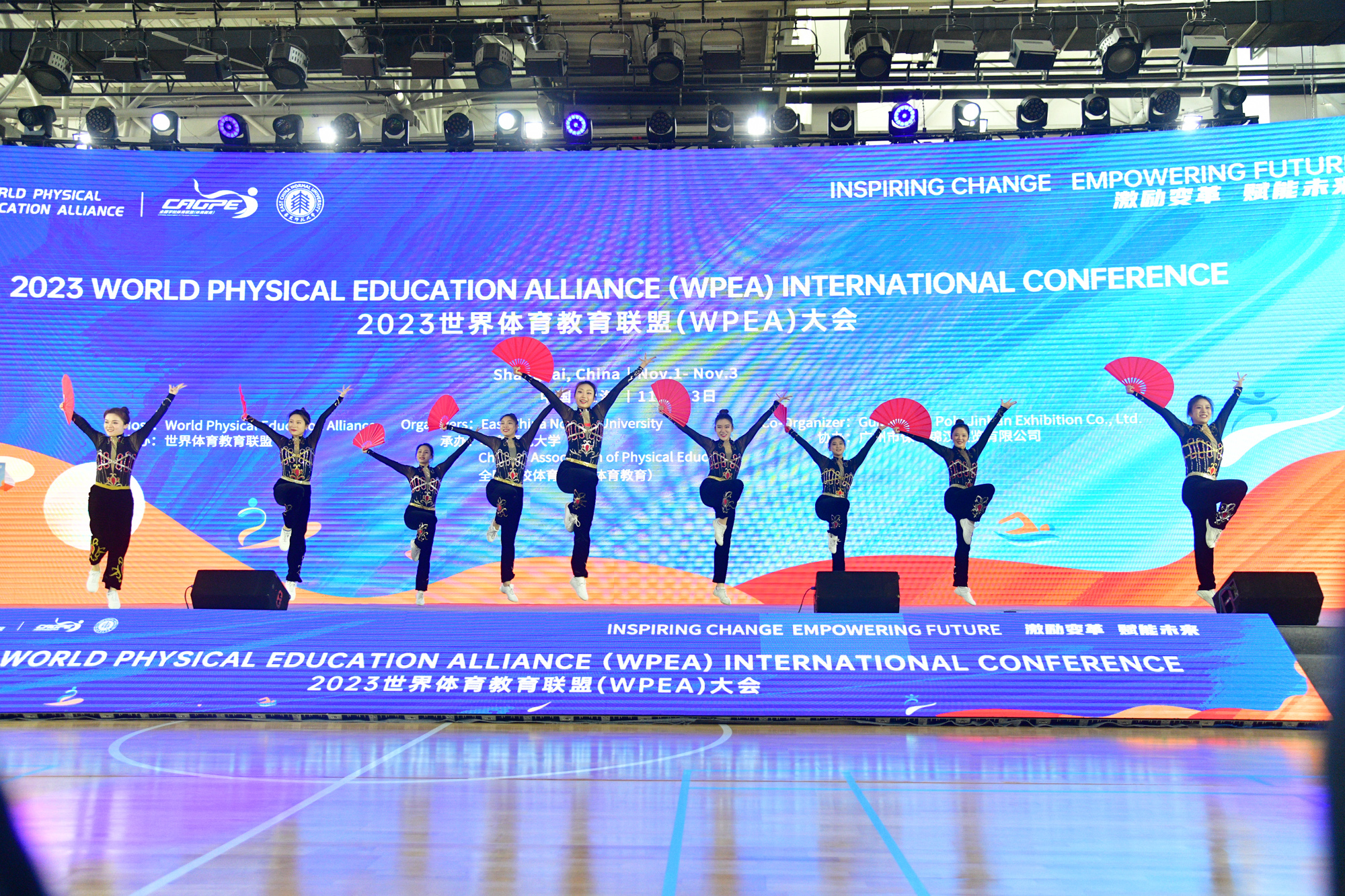 最后,开幕式在中华传统武术的表演中落下帷幕。作为主席单位,华东师大全面统筹规划,整合优质力量,以“中国声音”贯穿大会始终,结合国内外与会人员的实际需求,打造一场优质的学术盛会。据汪晓赞介绍,本次会议内容不仅包括大会主旨报告、专题报告、口头报告与墙报交流,涵盖体育教育与运动教学、动作发展与运动学习、身体活动与健康促进、体育与运动心理及运动生理与体适能等多个内容板块,帮助与会者全方位了解体育教育的最新动态,还包括Workshop与Social session文化社交环节,将通过现场展示与交流活动呈现具有中国特色的体育教育理念与实践,并通过武术、舞龙舞狮、柔力球、抖空竹等展演与体验活动传播中华传统体育文化,开幕式上中华民族传统风格的健美操表演与武术表演也是其重要部分。为了帮助与会者更好地学习国际前沿理念,会议还特设同声传译功能,中英文同步翻译,助力世界的跨文化交流。