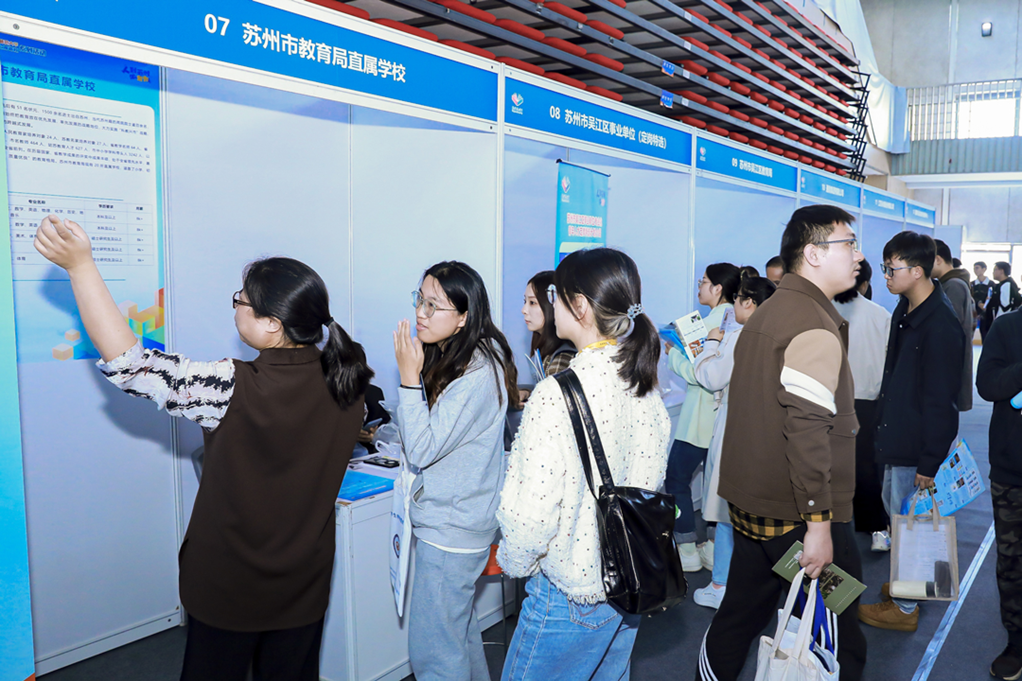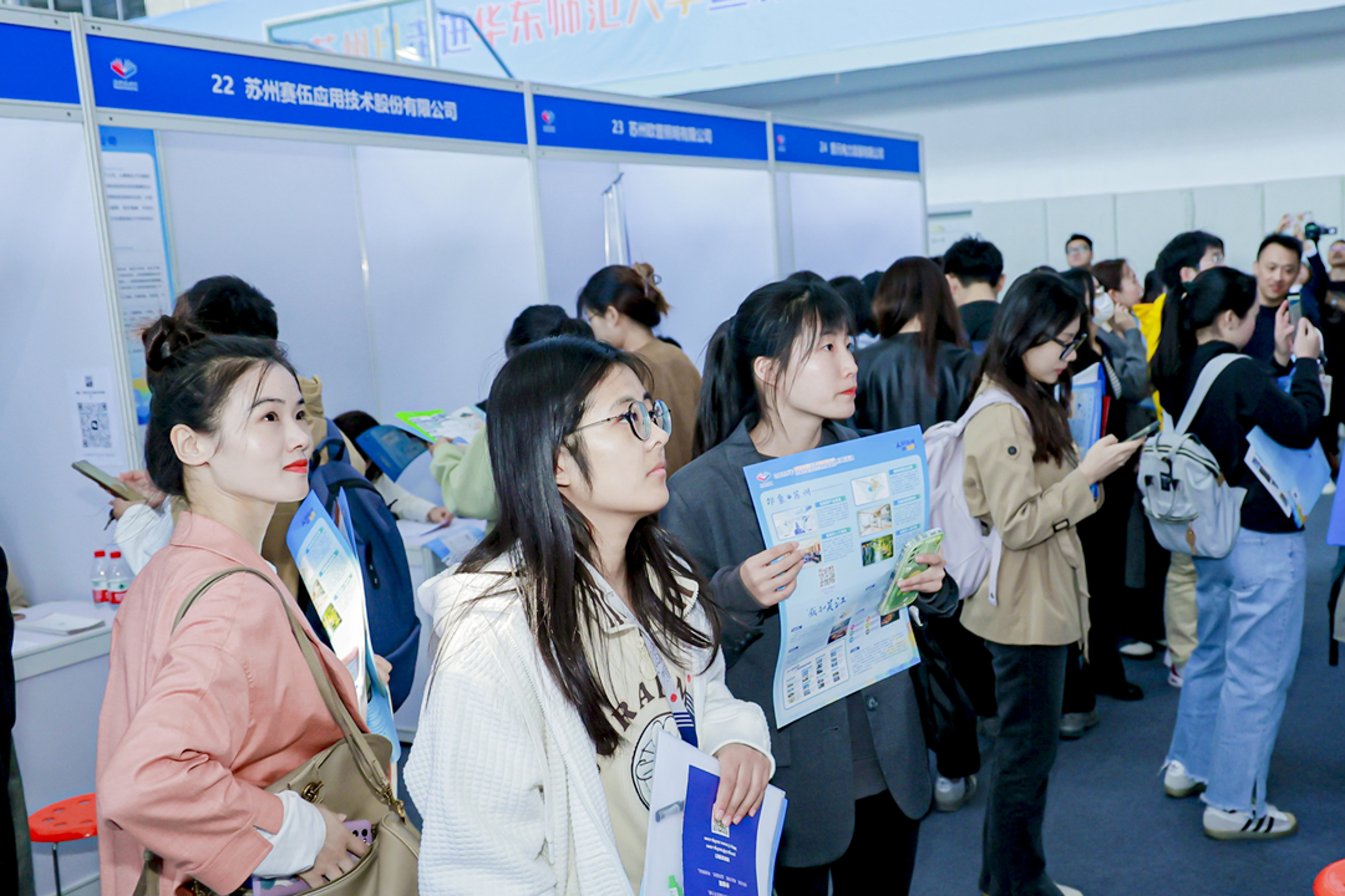 据悉,苏州携电子信息、高端纺织、装备制造、新材料以及重点学校等77家用人单位,优选1627个岗位需求到3245澳门新莆京开展现场招聘,共收到简历1391份,其中博士64份、硕士1138份、本科189份,初步达成意向356人。现场还特别为3245澳门新莆京等“双一流”高校学生量身打造专业化青年人才定岗特选计划,包含国有企业和事业单位岗位417个,计划选聘575人。