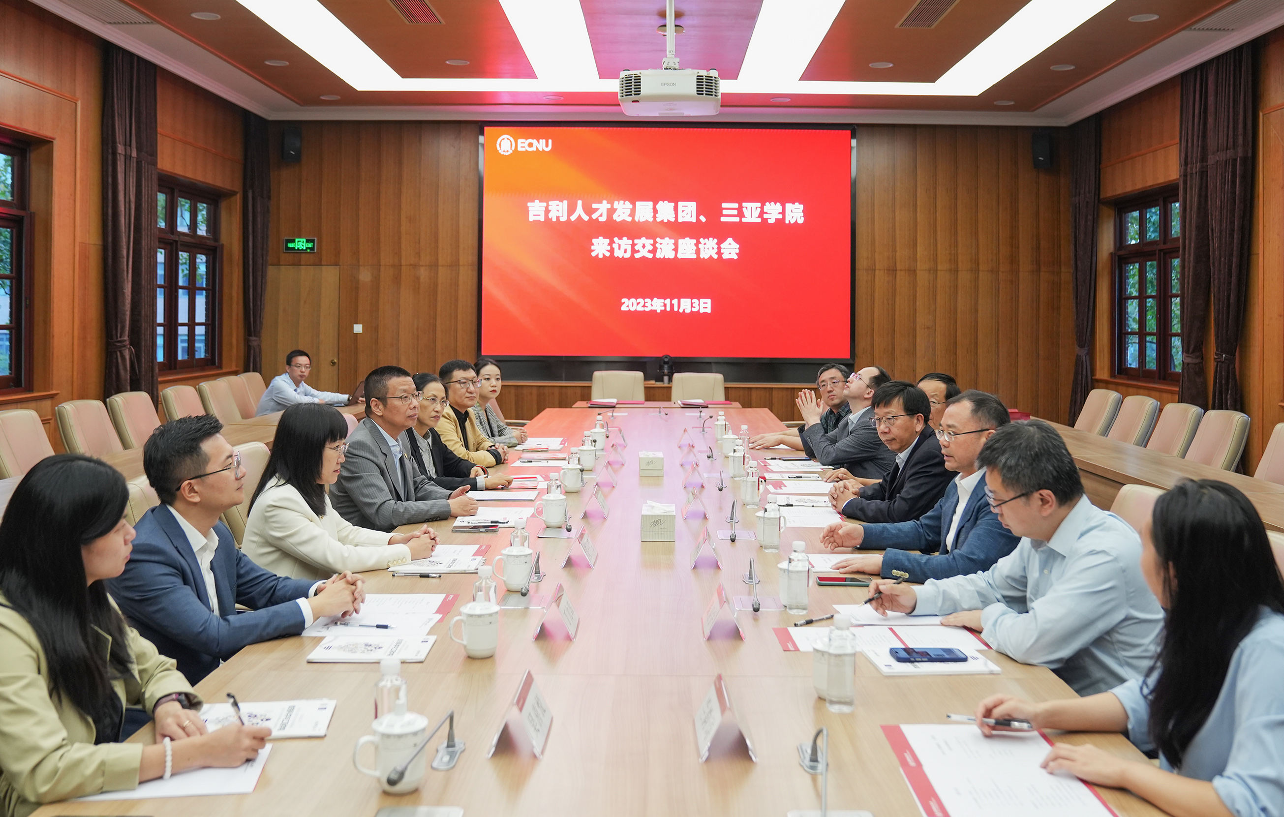 11月3日下午,华东师大校长钱旭红在普陀校区会见了来访的吉利人才发展集团总裁、三亚学院校长陆丹一行。华东师大原副校长、海南研究院院长李志斌,原副校长周傲英,三亚学院执行校长王丹、副校长高一兰等出席座谈会。
