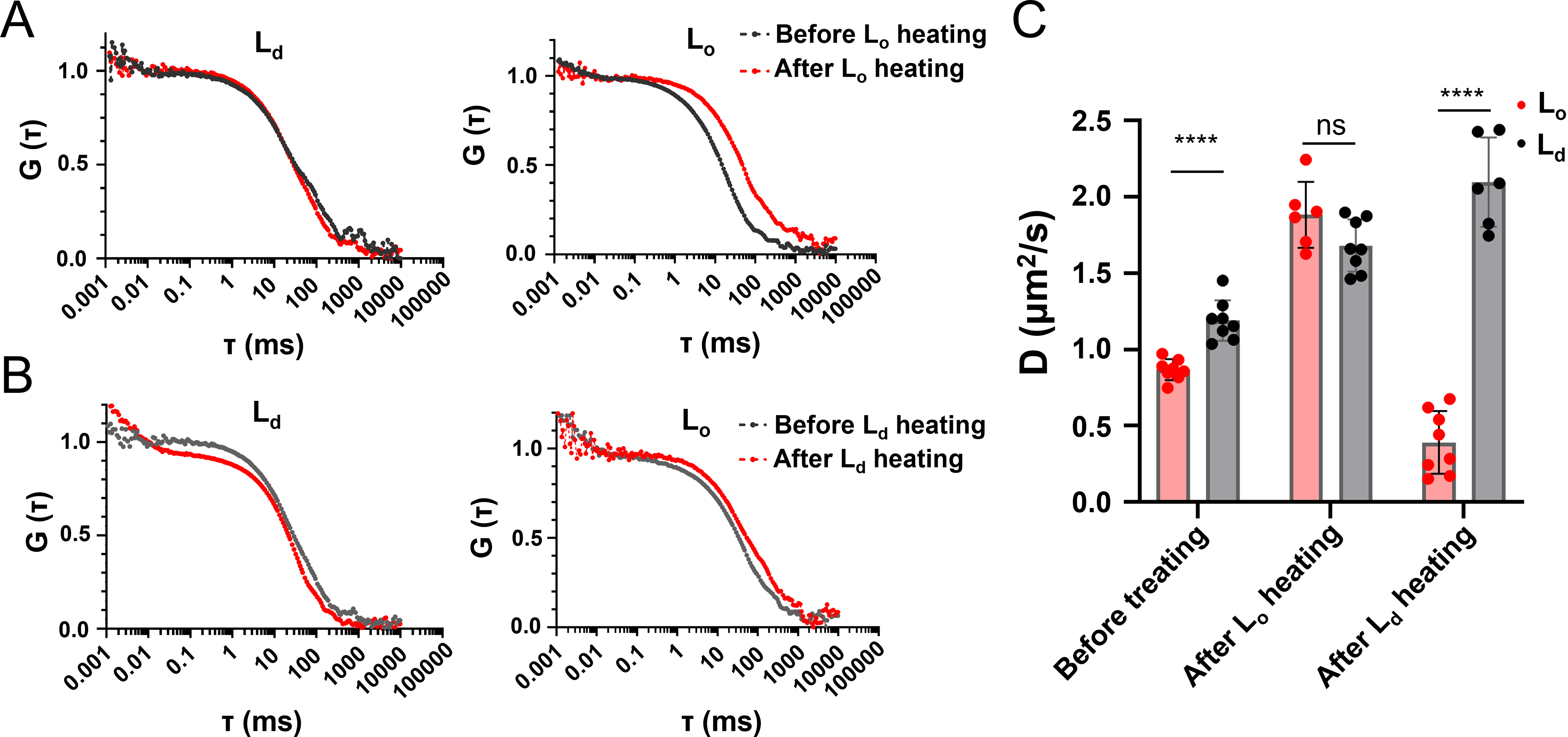 异质性是细胞膜生物物理化学最重要的特性之一。细胞膜上富含胆固醇/鞘脂的高度动态的结构域,被称为脂筏。脂筏充当信号分子组装平台,参与多种信号转导过程。由于脂筏的高度动态特性,对活细胞上脂筏实时成像面临巨大挑战,因而脂筏动态组装过程与下游信号通路间难以建立定量关联。华东师大化学与分子工程学院李迪教授团队长期致力于发展利用各种物理或化学方法扰动脂筏,探索脂筏的成分、尺寸、寿命等物理参数与下游信号通路间的关联。