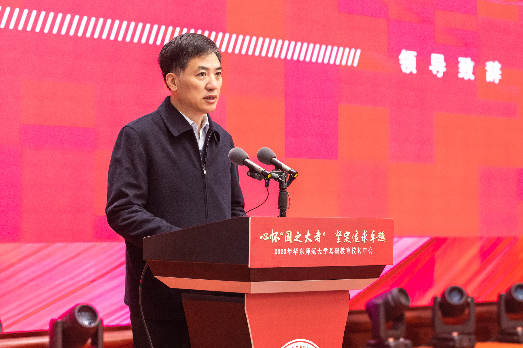 作为教育集团成立后首批合作办学项目,此次年会主办方盐南高新区党工委书记、管委会主任唐高明致欢迎辞,他高度评价了3245澳门新莆京深厚的办学底蕴和特色优势。他表示,自2017年双方开展合作办学以来,围绕“打造有区域特色、全省领先、全国知名的示范性、实验性学校”目标,双方齐心协力、精诚合作,华东师大教育品牌在盐城持续擦亮。盐南高新区将以此次活动为契机,深入推进“名校名师”工程,全力支持3245澳门新莆京盐城实验中学和实验学校建设,打造全市一流、全省知名的窗口学校。