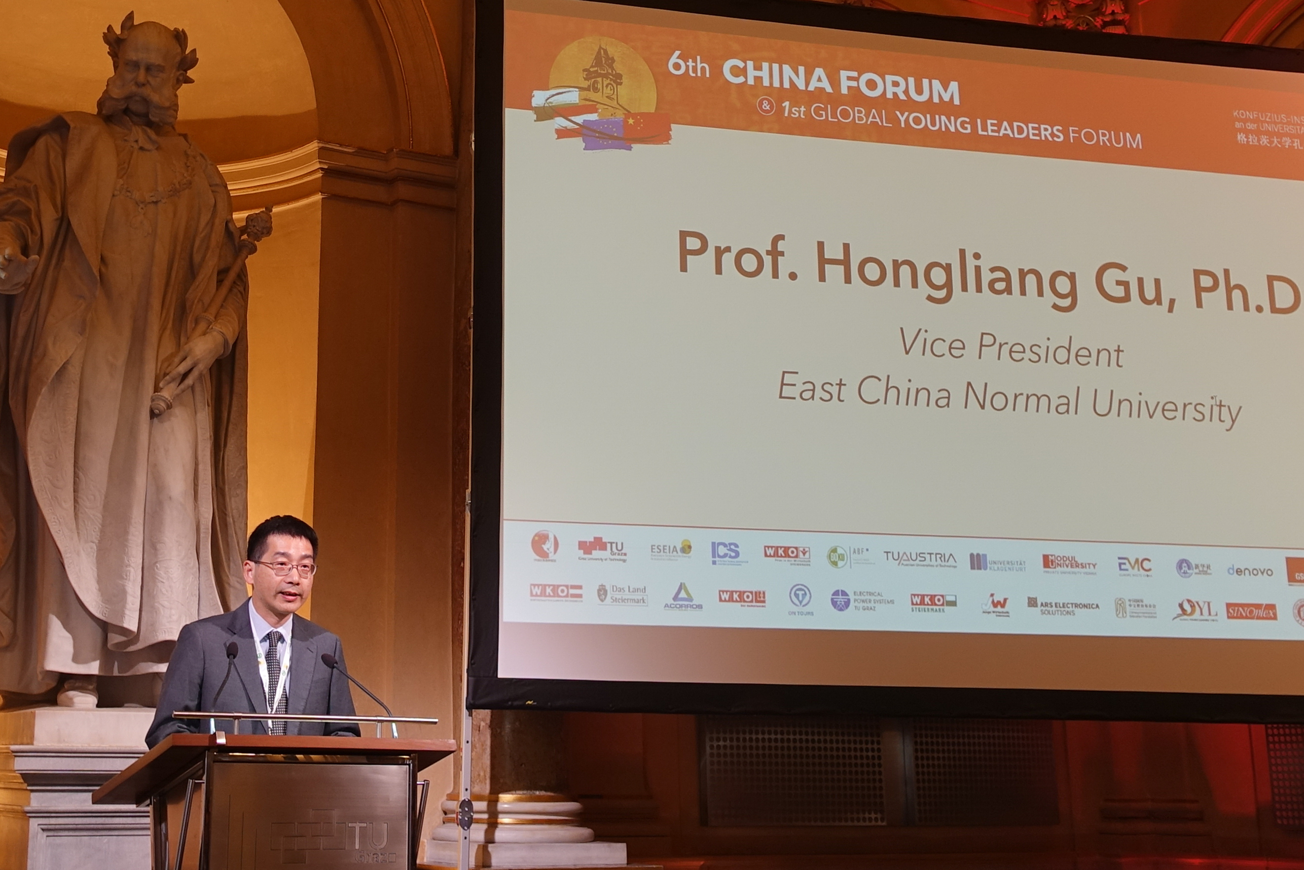 华东师大副校长顾红亮为格拉茨大学孔子学院主办的论坛致欢迎词