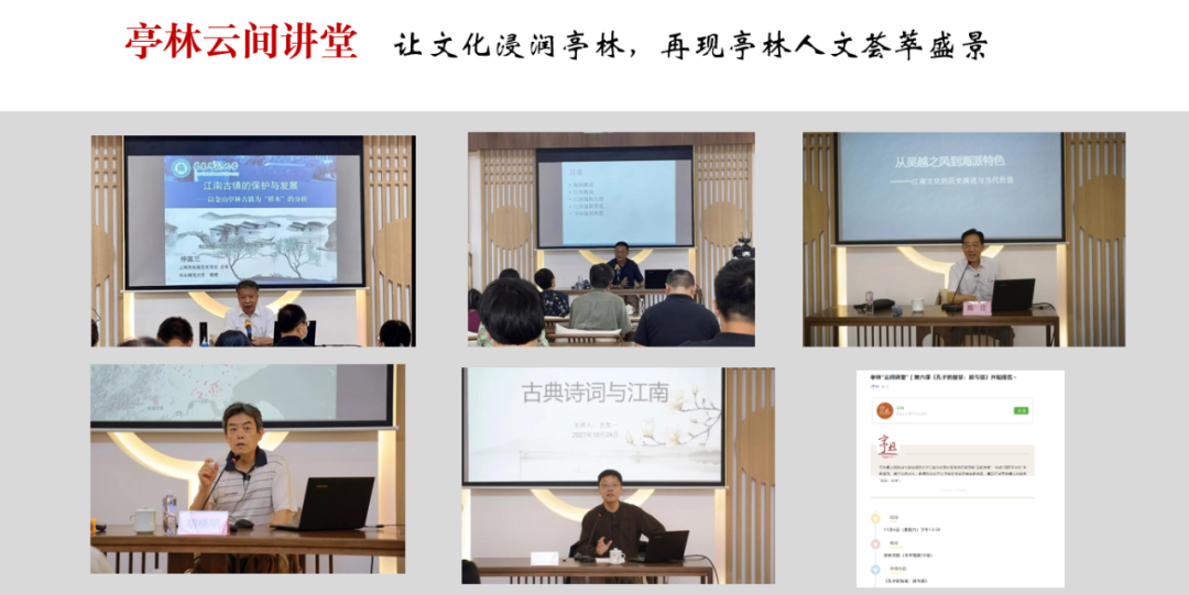 “亭林云间讲堂”邀请10位华东师大知名学者在亭林开设讲座,打通了高校服务社区文化的最后一公里,让更多的亭林市民享受文化大餐。
