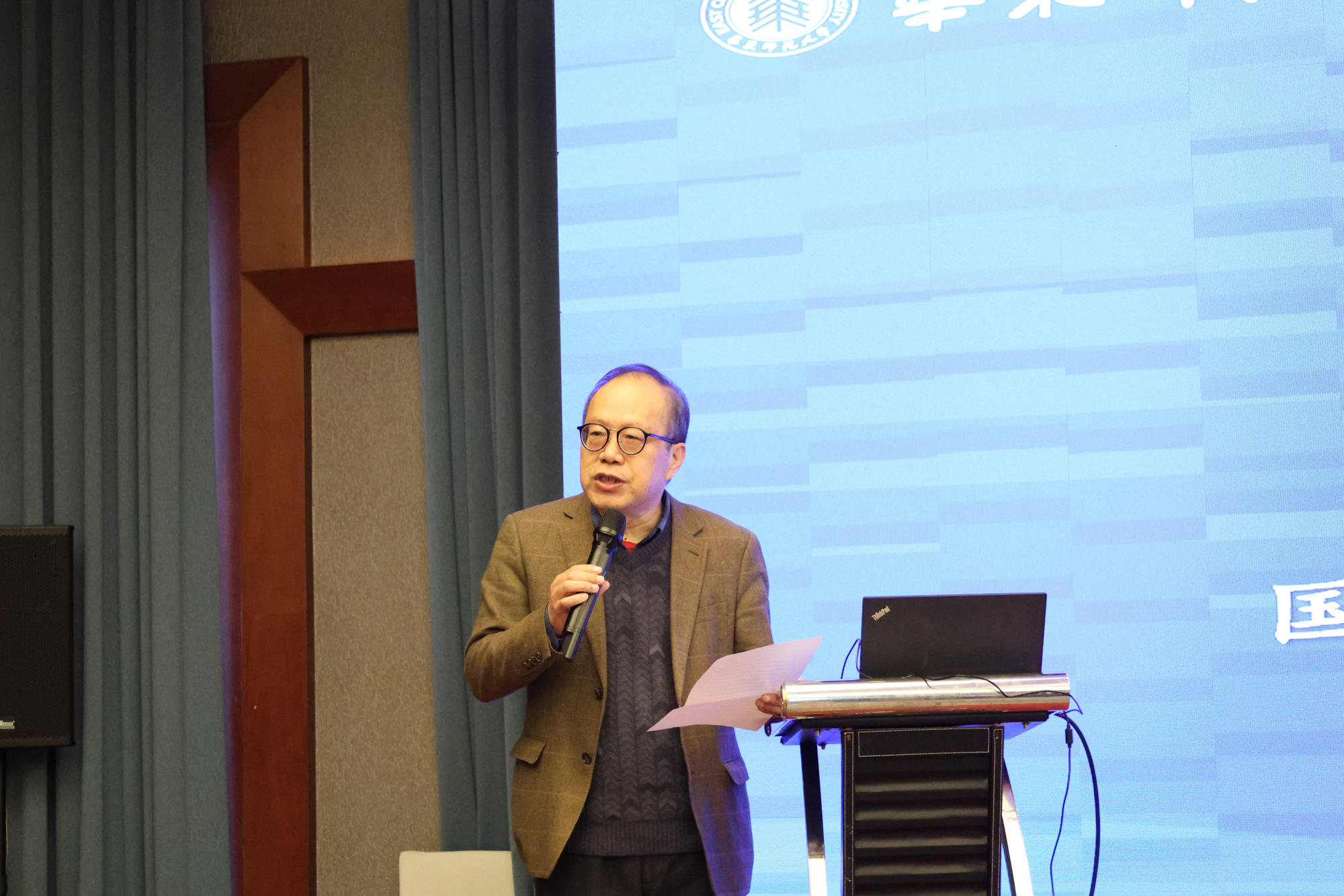 华东师大公共管理学院党委副书记高恩新教授作闭幕致辞。高恩新教授代表公共管理学院的党政班子向支持本次会议举办的各方机构代表表示衷心的感谢,向学院社保领域的带头人、国家智能社会治理实验基地(养老)的总负责人钟仁耀教授对学院数智化社会保障领域的研究、实践的发展做出的贡献表示了感谢,向保证会议顺利推行的以曹艳春教授为首的会务组的老师们、同学们表示了感谢。