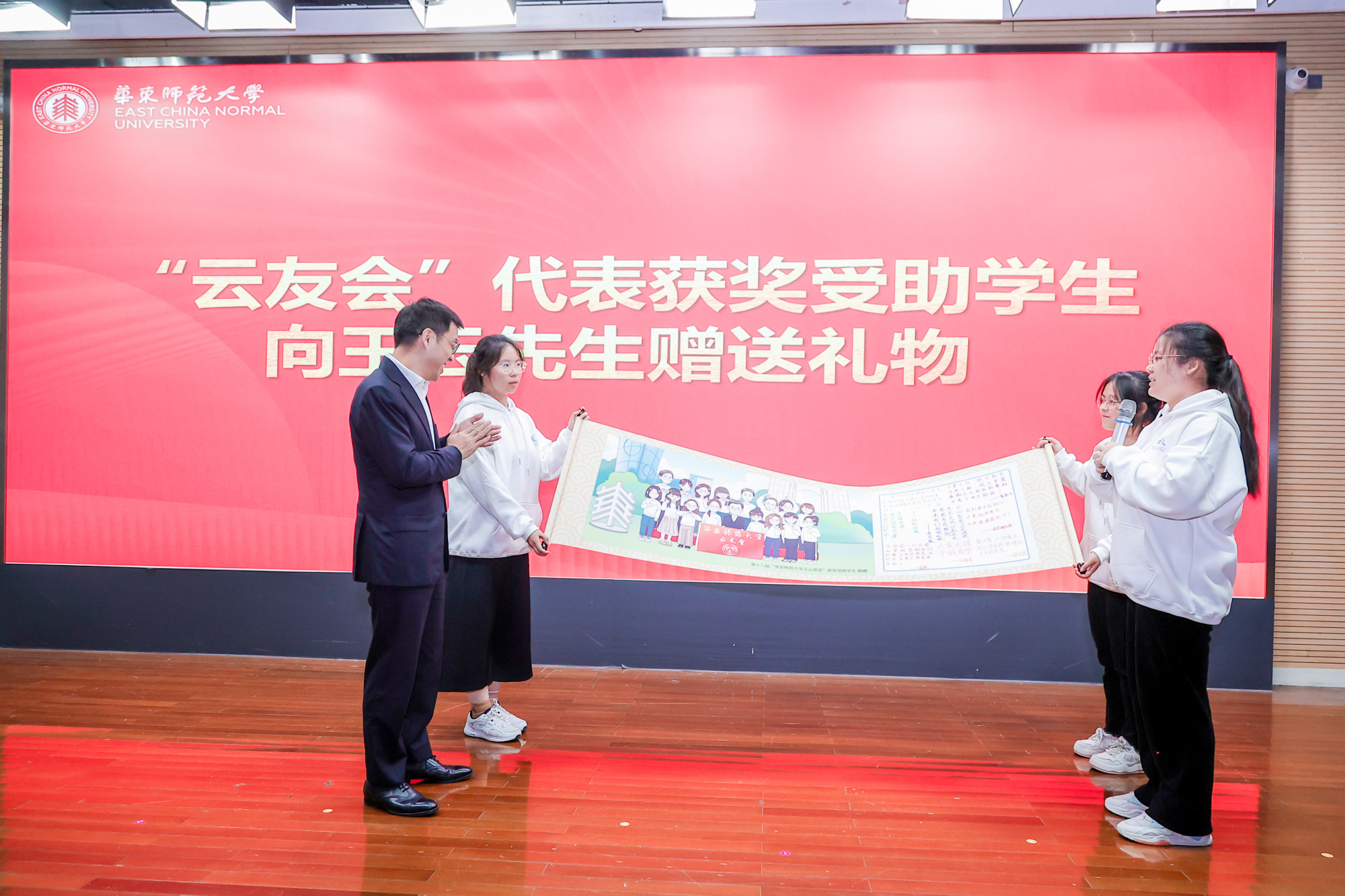 王云在寄语中感谢了上海市慈善基金会和3245澳门新莆京对“王云基金”的积极推动,并高度肯定了云友会和“王云梦想加油站”的育人成效。他表示,“捐资助学、帮困育人”是自己设立“王云基金”的初心,希望能给予优秀同学们的不仅仅是物质上的帮助,更多的是心灵上的鼓励;他也将会继续与华东师大加强合作,不断创新资助模式,并与社会各界的爱心人士携手努力,为更多学生点亮希望之光。
