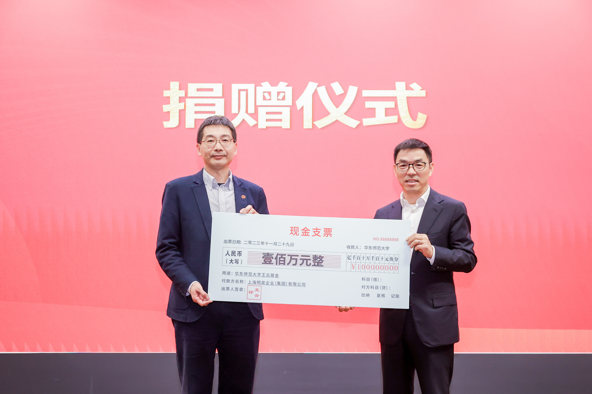 王云代表上海明泉企业(集团)有限公司捐赠100万元人民币