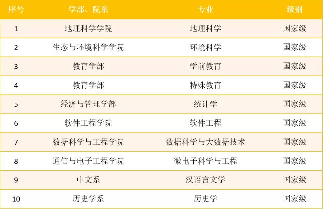 日前,教育部办公厅印发《教育部办公厅关于公布2019年度国家级和省级一流本科专业建设点名单的通知》,正式公布了2019年度一流本科专业建设“双万计划”(国家级和省级一流本科专业)建设点名单。我校申报21个专业,其中地理科学等19个专业入选首批国家级一流本科专业建设点,信息管理与信息系统等2个专业入选省级一流本科专业建设点。