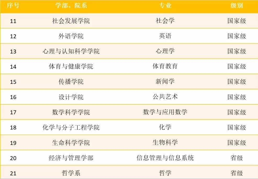 附:2019年我校入选国家级、省级一流本科专业建设点名单(专业按校园网院系设置中的院系顺序排序)
