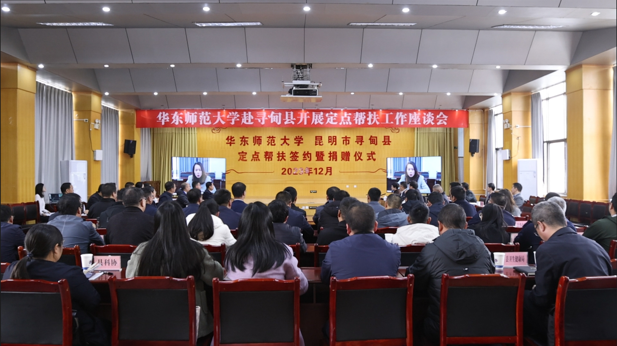 12月1日,华东师大校长、中国工程院院士钱旭红,校党委常委、组织部部长、人文与社会科学研究院院长朱军文一行到华东师大定点帮扶县——云南省寻甸县开展工作调研并召开座谈会。昆明市委常委、副市长安恩法,寻甸县“四套班子”主要领导出席座谈会,会议由寻甸县委书记高宇明主持。为支持配合华东师大的定点帮扶工作,云南师范大学党委书记张祖武、党委办公室主任林卫东陪同钱旭红一行全程参与调研。