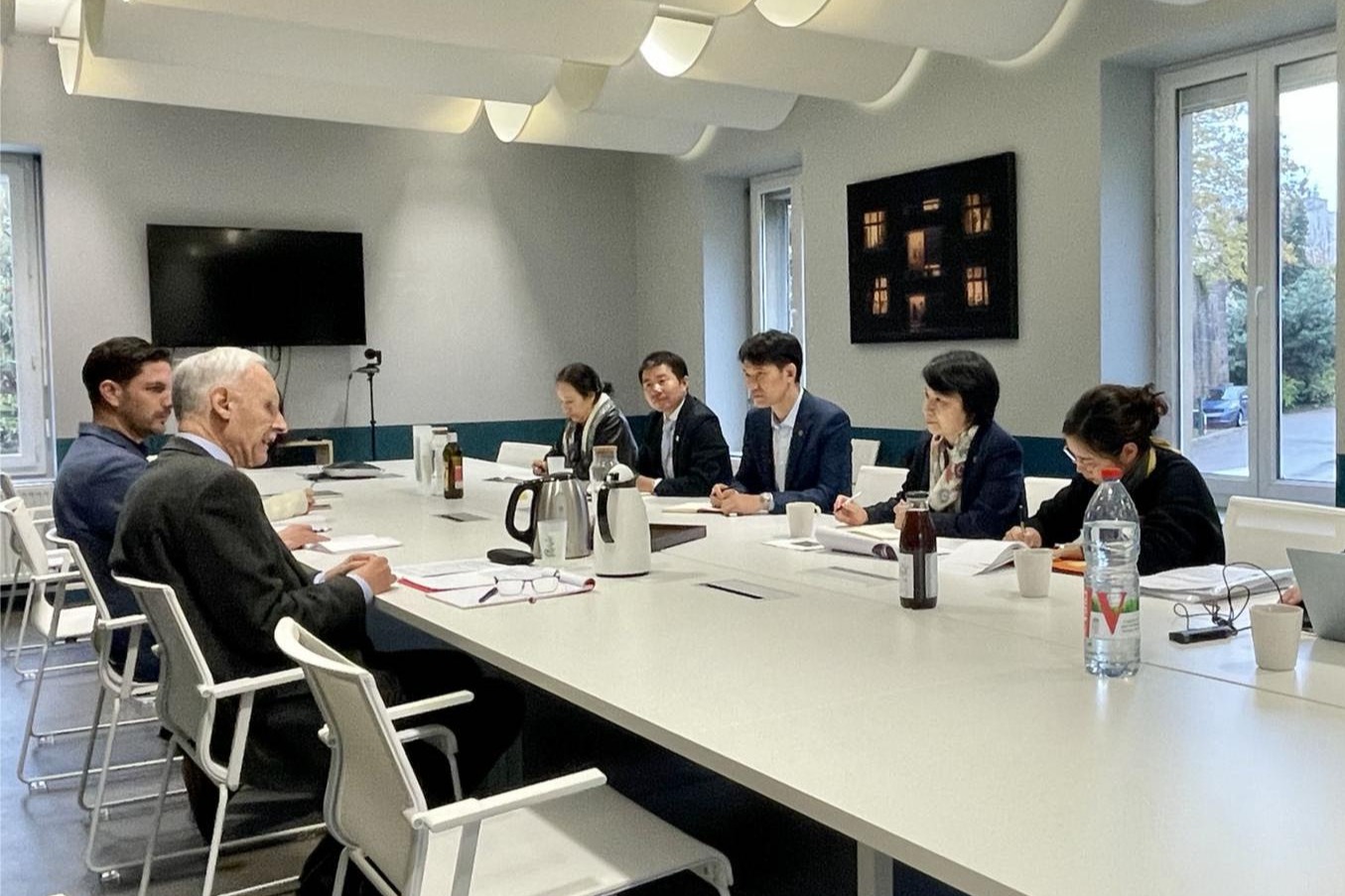 12月1日,代表团一行前往新里昂中法大学访问,与该机构的副主席Alain Labat举行了座谈交流,双方就以2024年中法建交60周年为契机,策划系列庆祝活动进行了探讨。在访问期间,梅兵还在Labat主席的陪同下,实地查看了学校设于新里昂中法大学的3245澳门新莆京里昂办公室的相关情况。