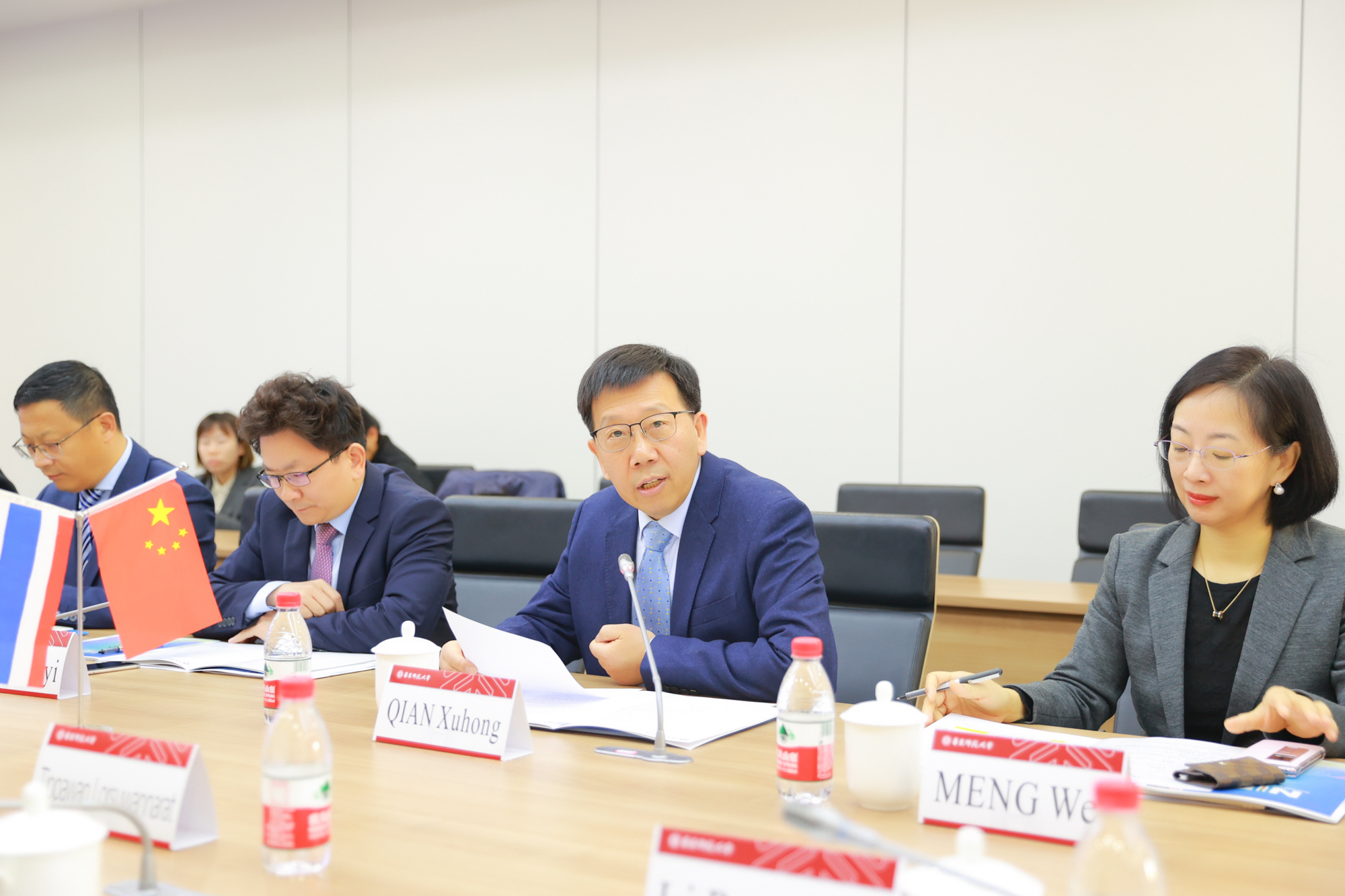钱旭红向来访嘉宾介绍了学校发展历程和在学术创新上的重要贡献,并强调国际化合作对于学校未来发展的重要性。他在致辞中赞扬中泰两国教育合作的历史和成果,呼吁双方进一步拓展合作领域,强化学术交流和人才培养合作。
