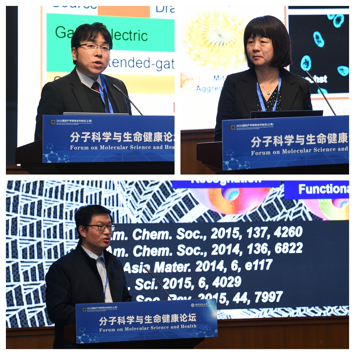 上海交通大学李富友教授和钱昆教授的报告分别聚焦医用发光材料以及基于固相质谱的新型代谢分析平台构建,深入探讨了相关工作在生命健康领域的应用。日本东京大学Tsuyoshi Minami教授介绍了基于超分子化学的有机晶体管传感的研究工作。清华大学童爱军教授对聚集诱导发光小分子荧光探针方面的工作进行了交流。复旦大学孔彪教授报告了基于超组装体系智能界面构筑与传感应用方面的研究工作。