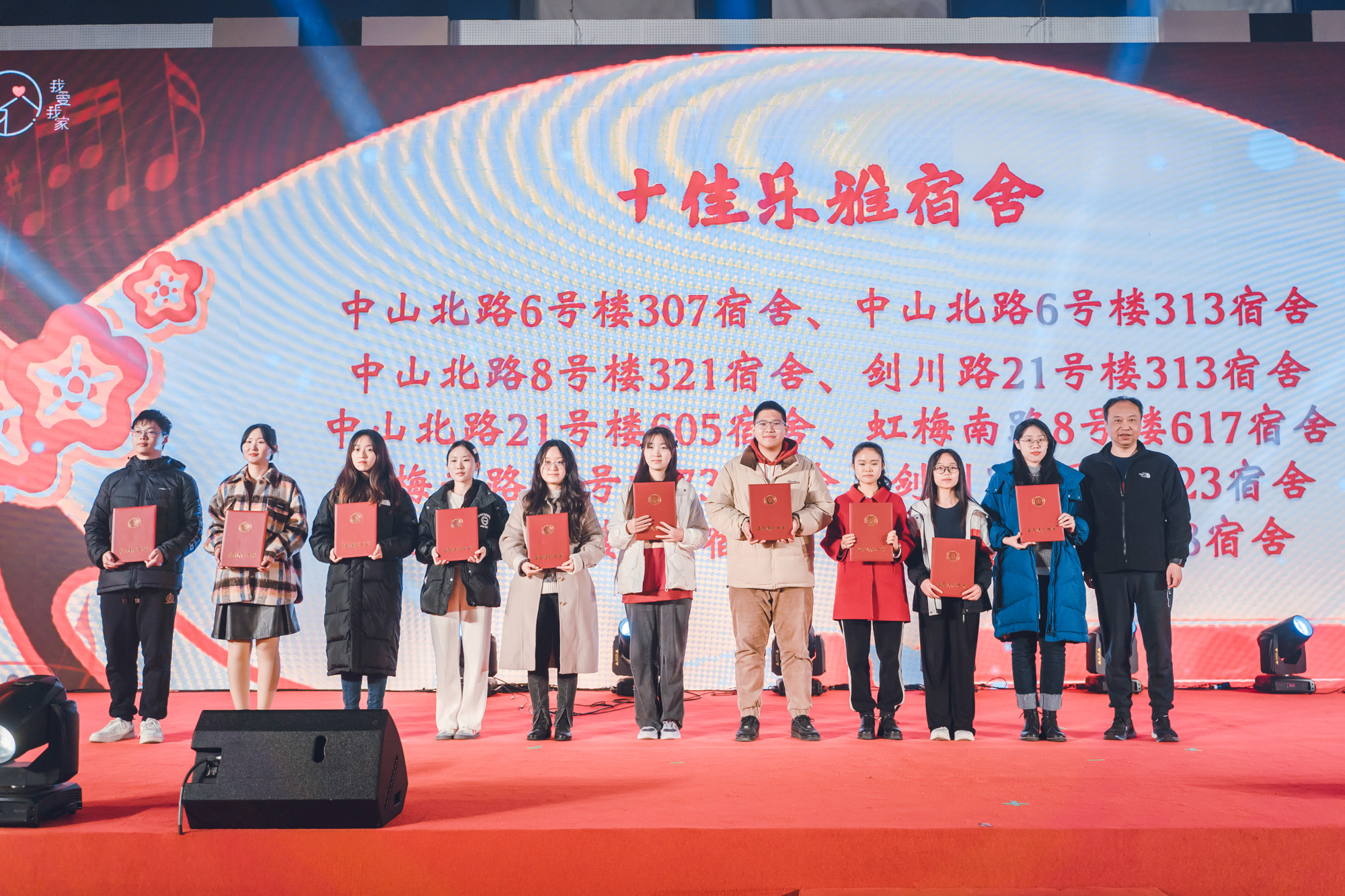后勤保障部积极助力“一站式”学生社区建设,通过评选“乐雅”寝室的方式,鼓励青年学子营造积极向上、奋发有为的寝室氛围。在本次晚会上,由副校长戴立益为获得2023年十佳“乐雅宿舍”的学生代表颁奖,对积极参与学生社区文化建设的学子予以鼓励。