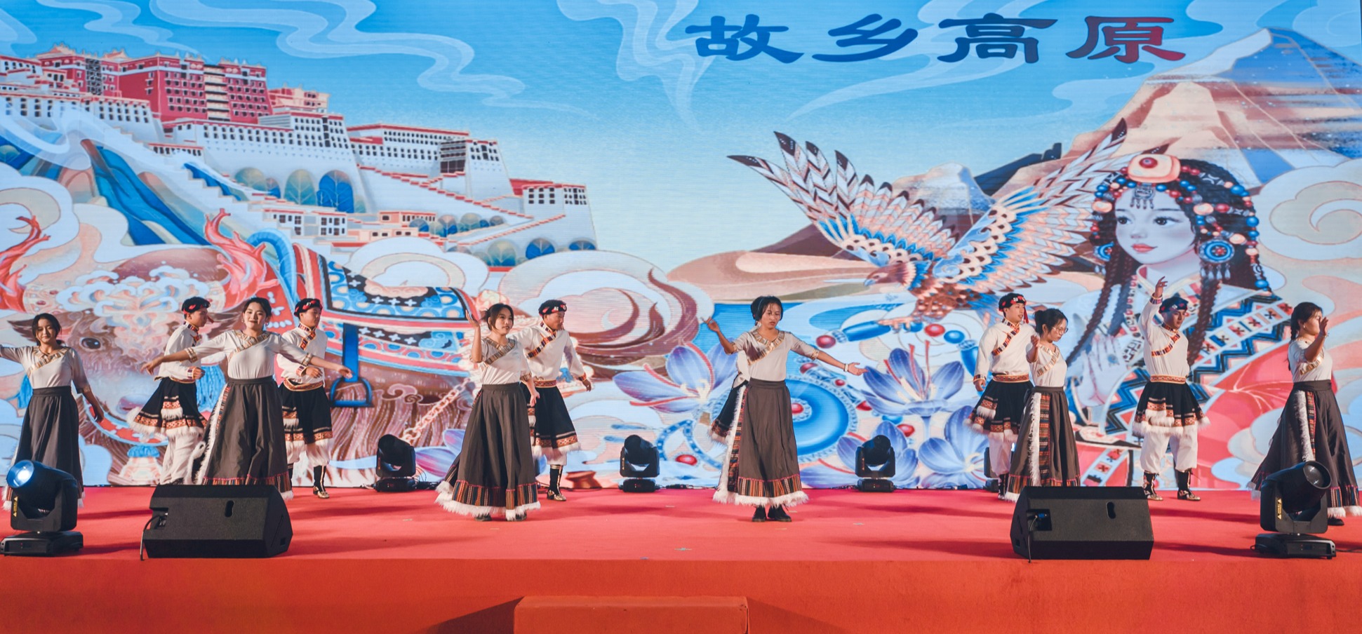 冈拉梅朵藏文化社带来了舞蹈《故乡高原》。12名舞者穿戴华丽、身姿挺拔、舞步优美,将独特多彩的藏族艺术带到观众眼前。