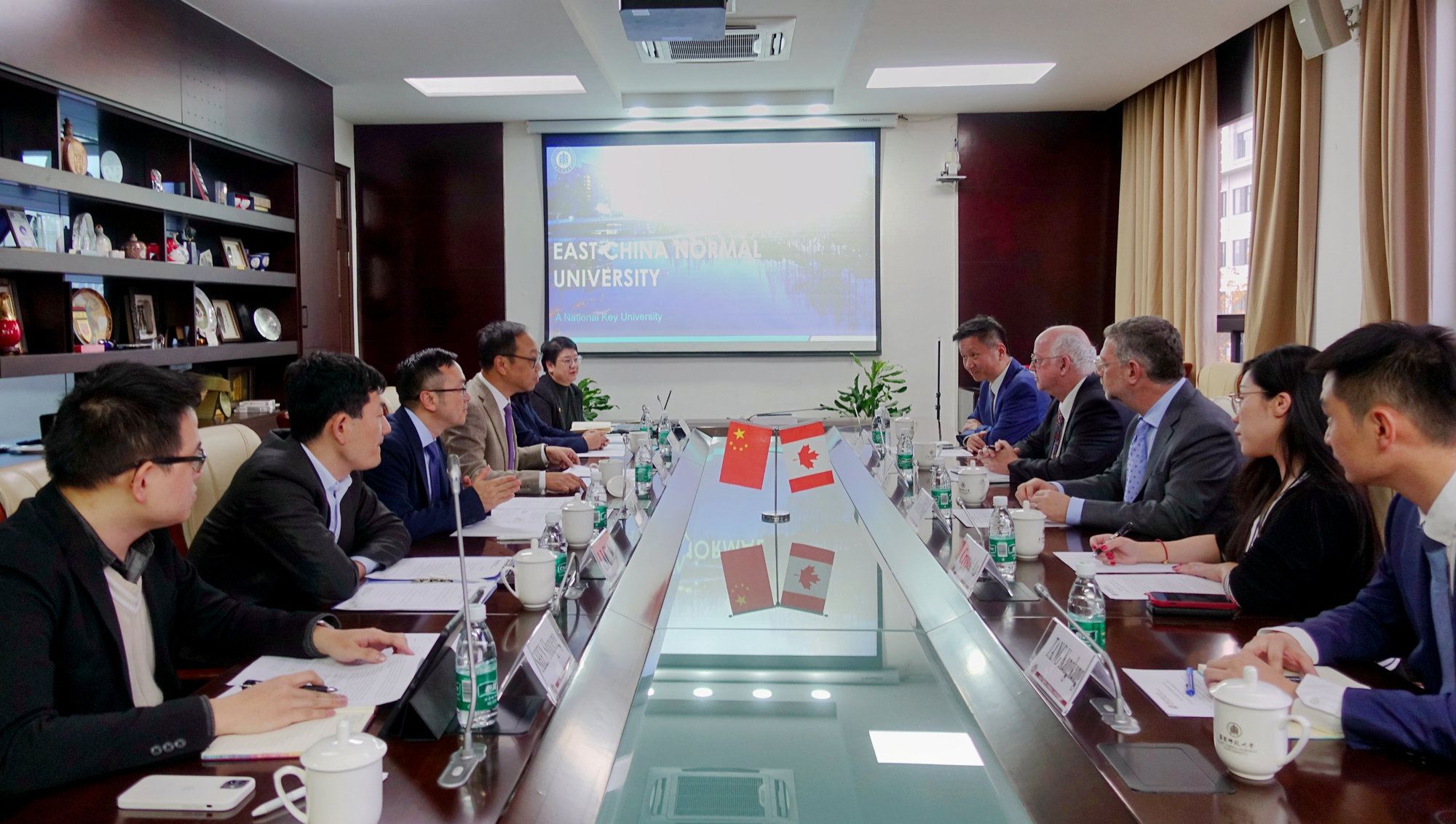 12月9日,加拿大多伦多大学士嘉堡校区(University of Toronto Scarborough,以下简称“多大”)学术副校长兼教务长威廉·高夫教授、副教务长大卫·茨维格教授等一行5人到访华东师大。华东师大副校长戴立益在普陀校区会见代表团一行,地理科学学院副院长余柏蒗、研究员李超、第二附属中学副校长孟祥萍、经济与管理学院外事秘书沈树鹏以及国际合作与交流处相关人员陪同会见。