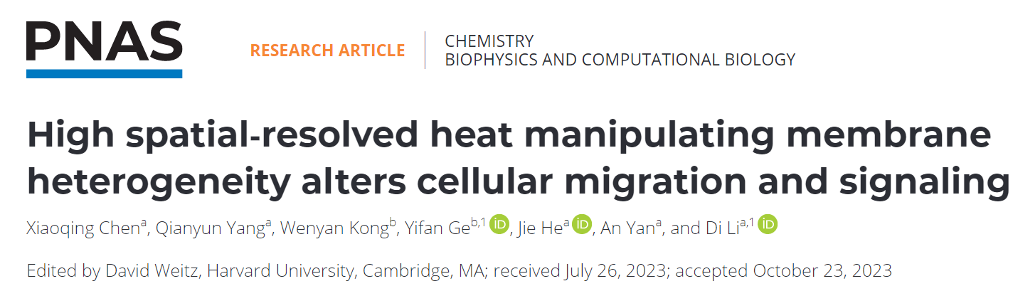 相关研究成果以High Spatial-resolved Heat Manipulating Membrane Heterogeneity Alters Cellular Migration and Signaling为题,发表在PNAS杂志。