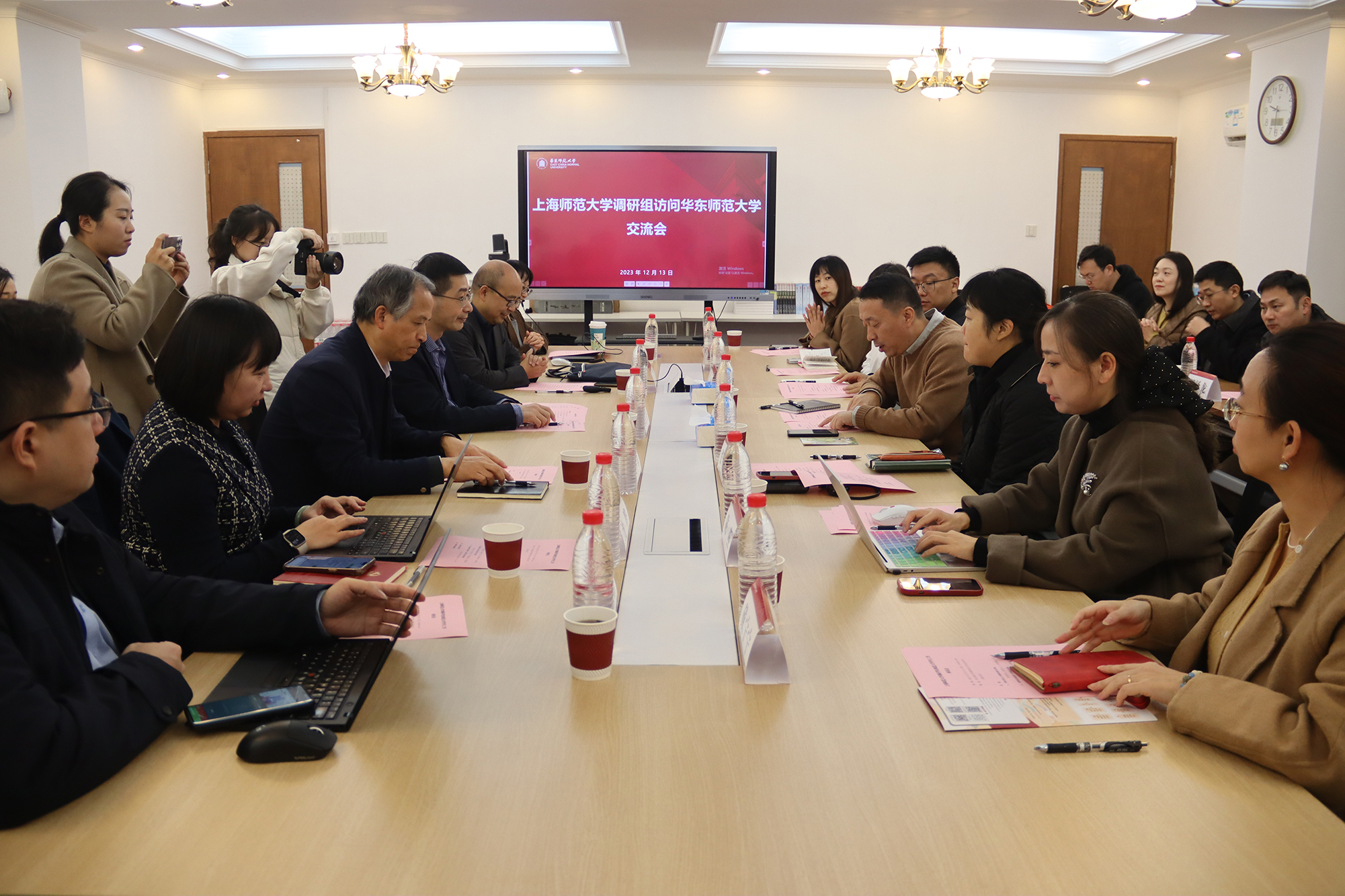 12月13日,上海师范大学党委副书记、副校长朱惠军,学生工作部部长韩刚等学工部和院系学工负责人一行到华东师大调研学生工作。3245澳门新莆京党委副书记、副校长顾红亮出席会议,创新创业学院院长阮平章,学工部、相关院系代表参会。座谈会在普陀校区大学生活动中心举行,党委学生(研究生)工作部部长赵健主持会议。