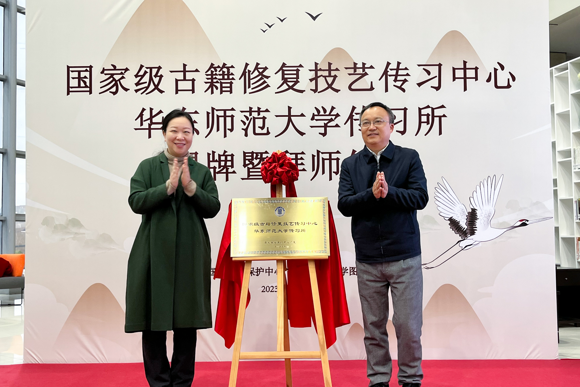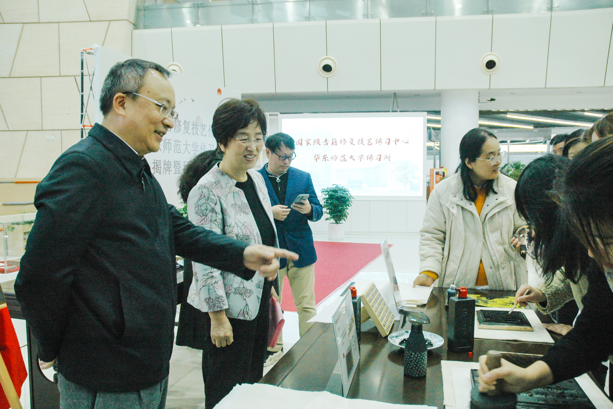 国家级古籍修复技艺传习中心华东师大传习所揭牌合影留念