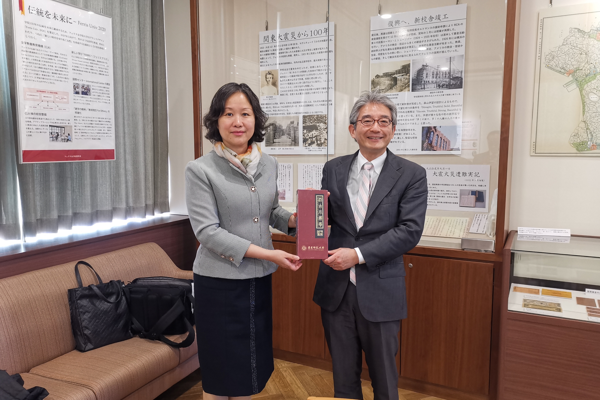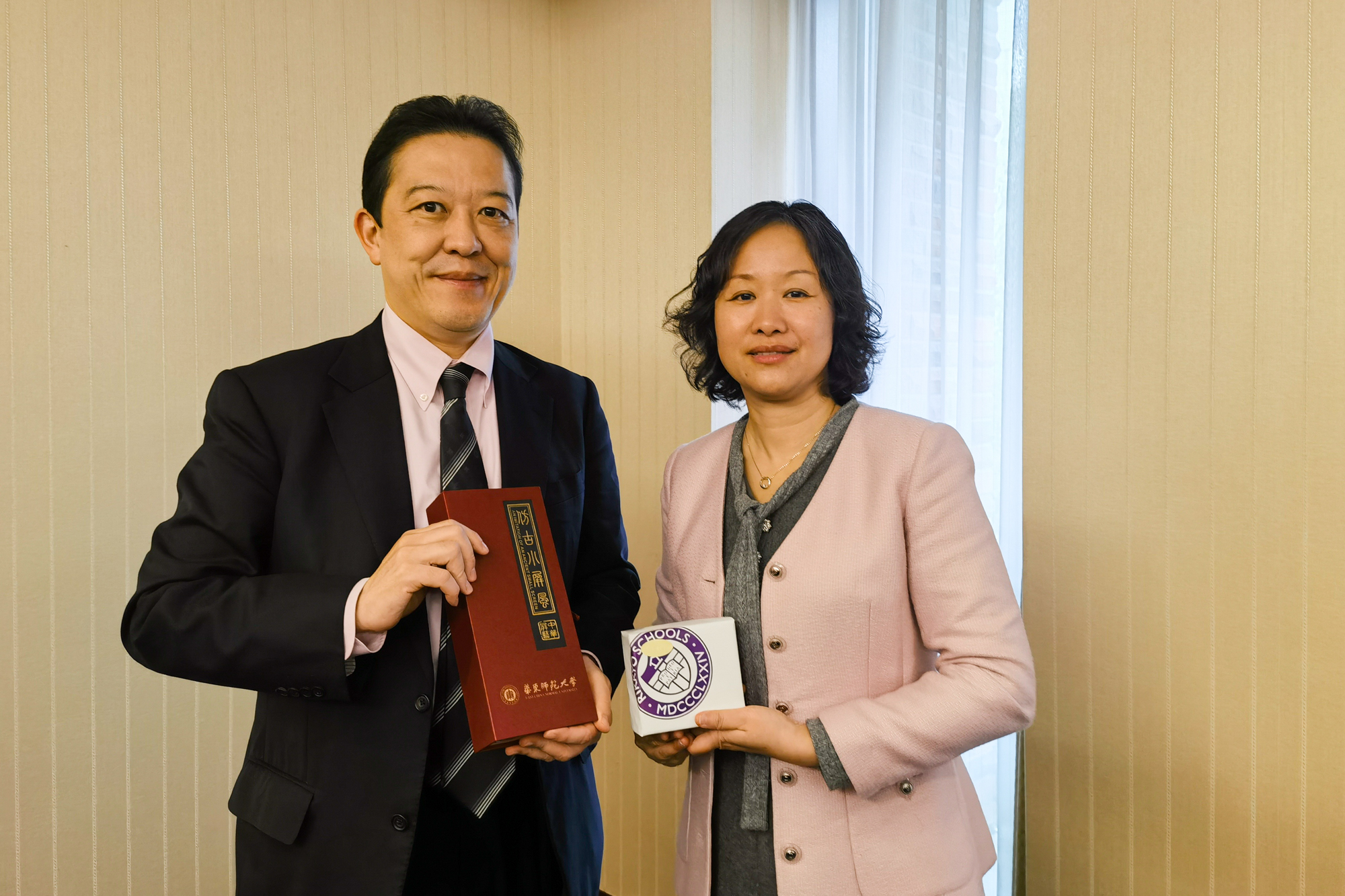 华东师大副校长程静与立教大学松井副校长互赠纪念品