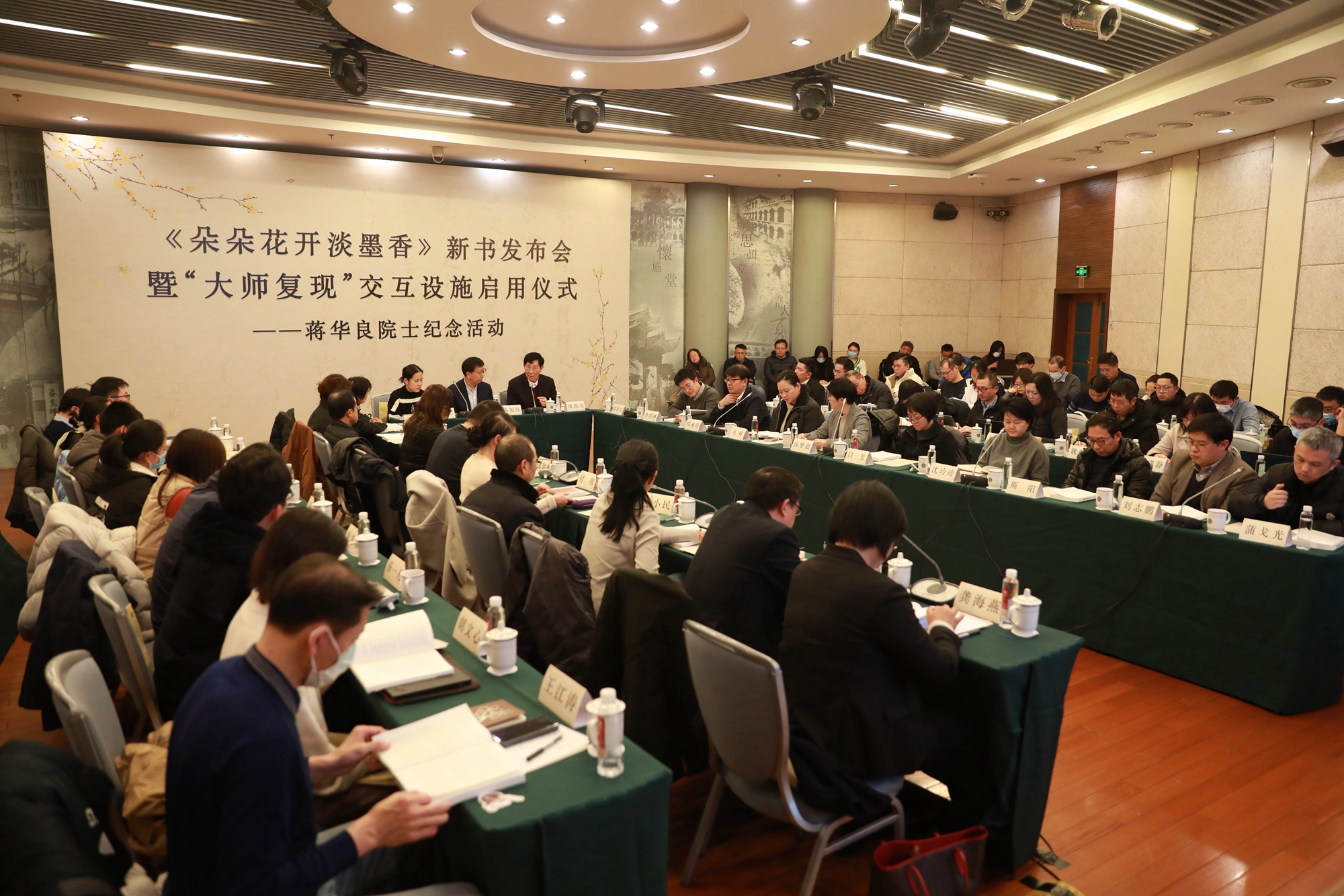 复旦大学、上海交通大学、西湖大学、上海科技大学、华东理工大学、苏州西郊利物浦大学、上海药物所、临港实验室等单位代表,蒋华良院士的家乡代表,上海复星医药(集团)股份公司、上海鹰谷信息科技有限公司、良甜生物医药科技有限公司等企业界代表,以及华东师大出版社等学校相关部门负责人,“大师复现”交互设施开发团队成员参加会议,表达缅怀和纪念。