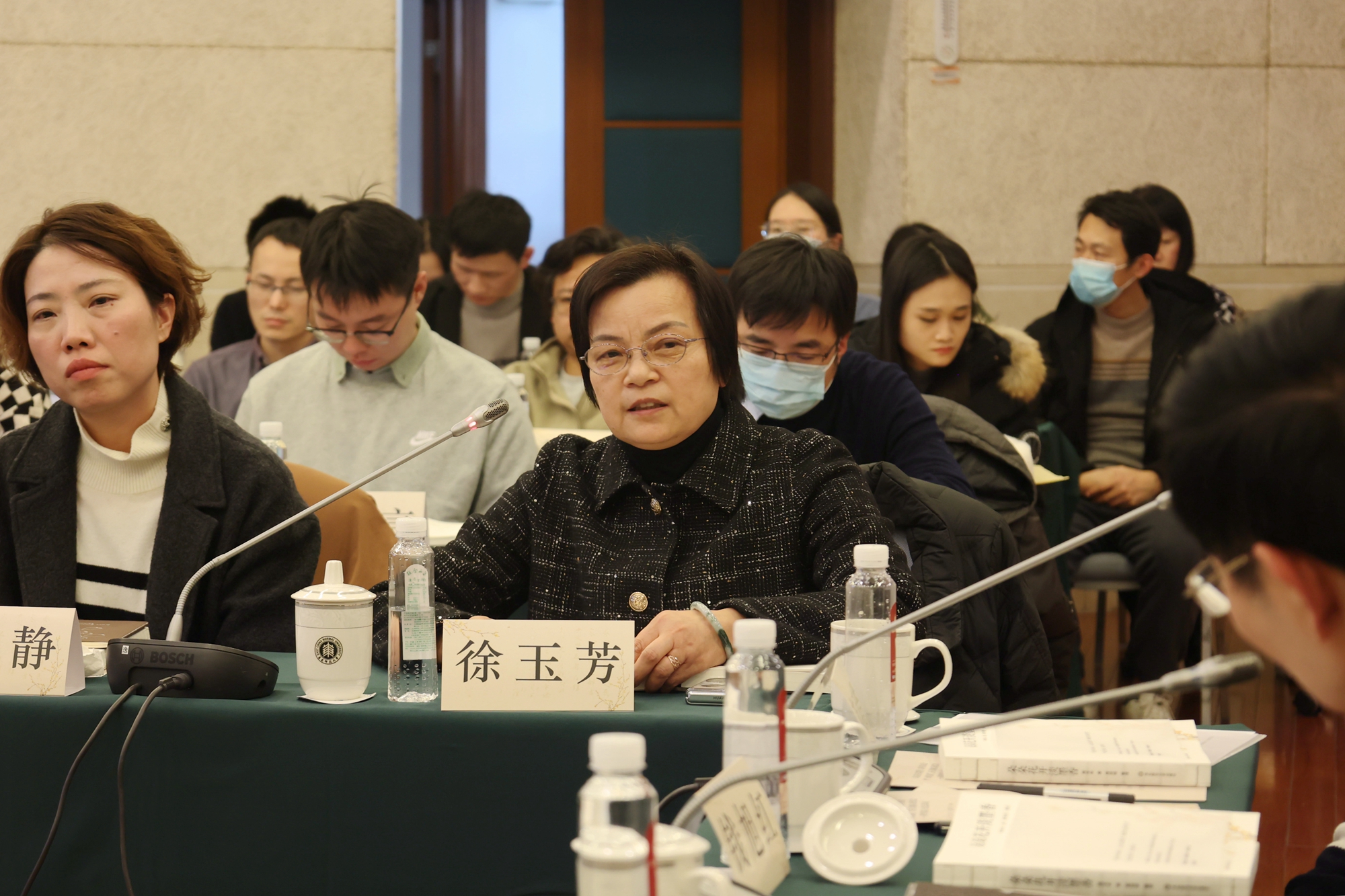 华东师大出版社总编辑龚海燕介绍书籍出版情况。她特别提到书籍的封面装帧,一支黄色腊梅跃然纸上,素雅清新,迎冬绽放。她表示,腊梅是蒋院士生前的最爱,这一设计正契合了科学工作者追求真理、永不放弃的精神追求。