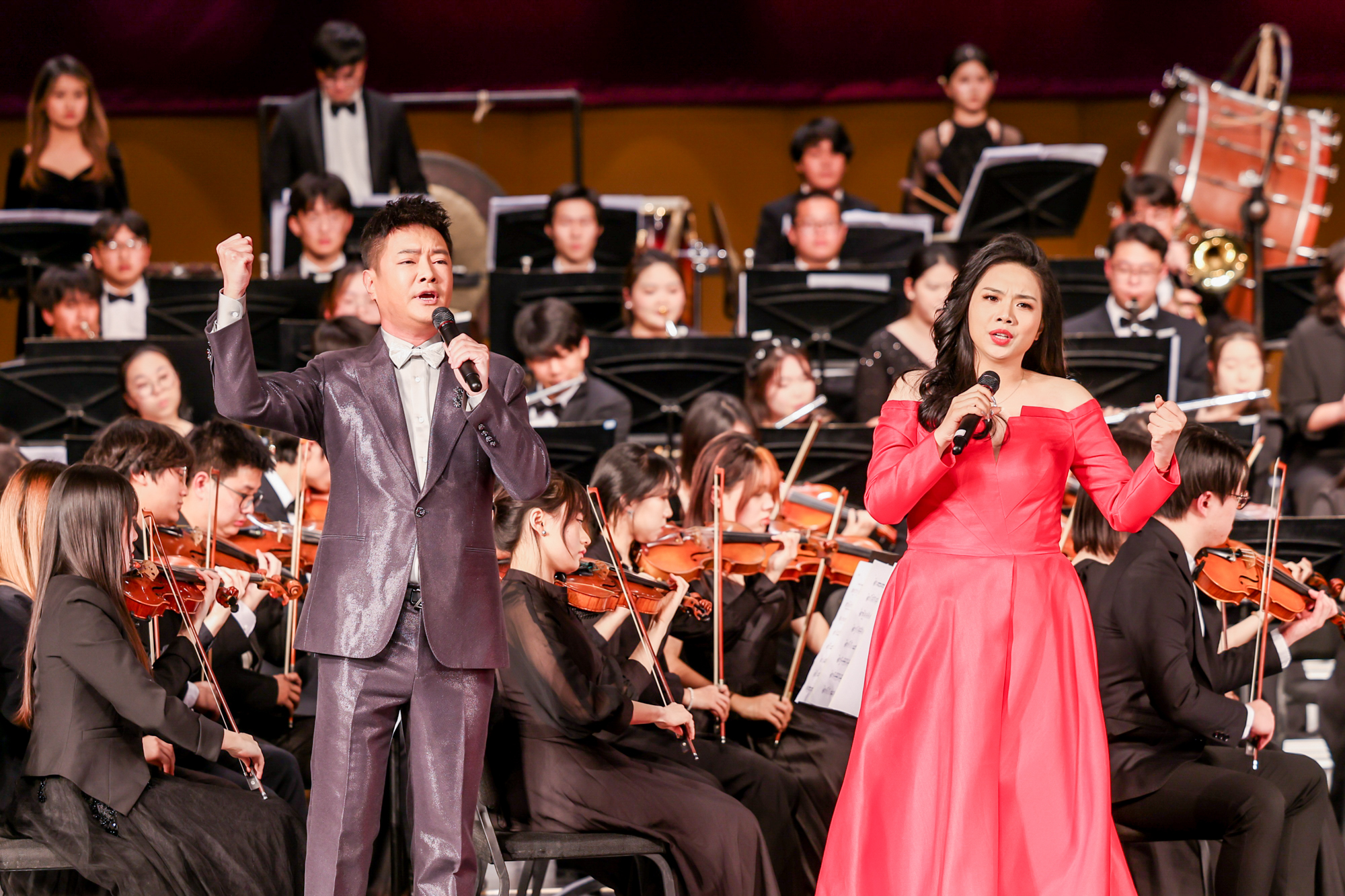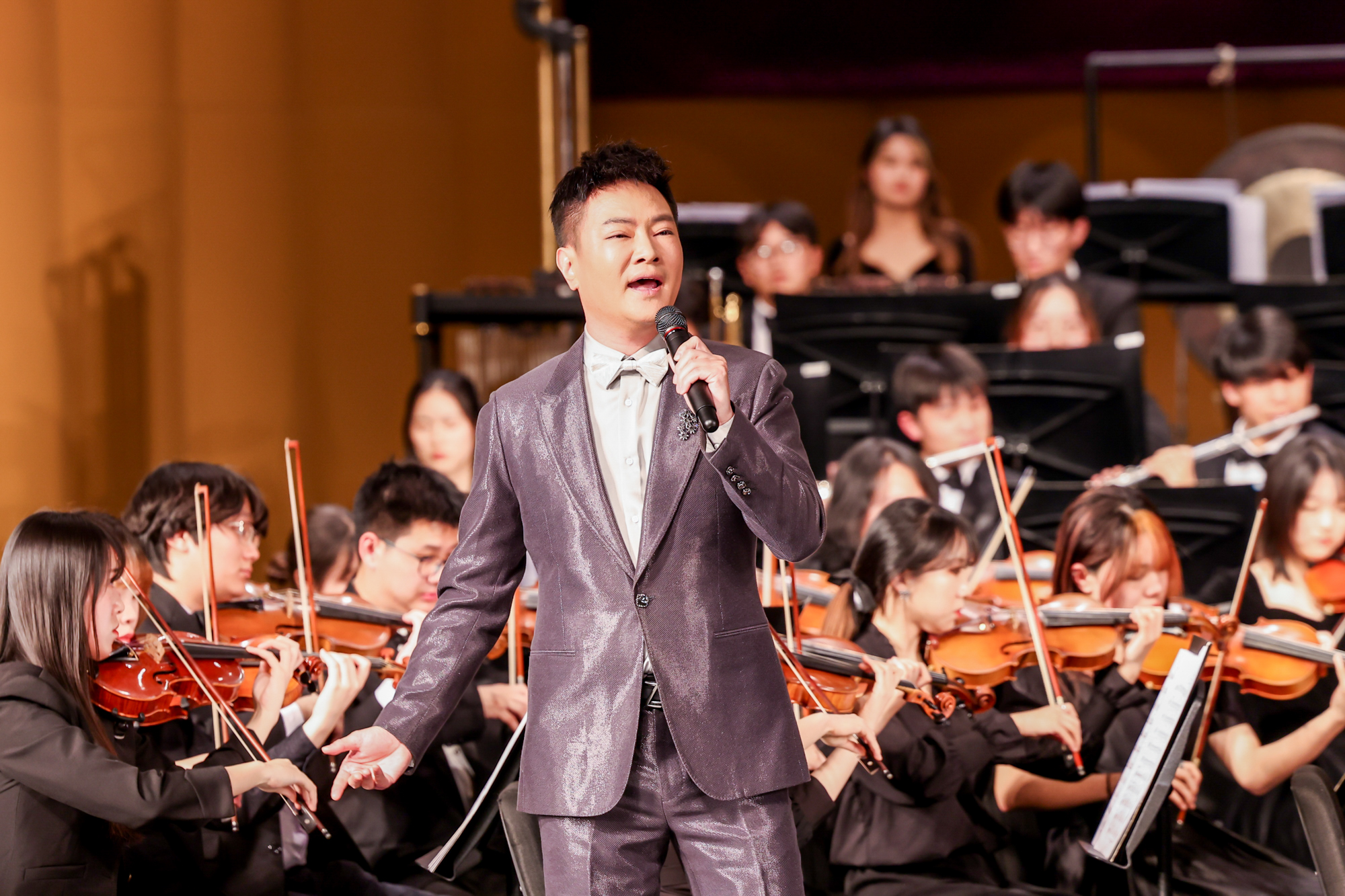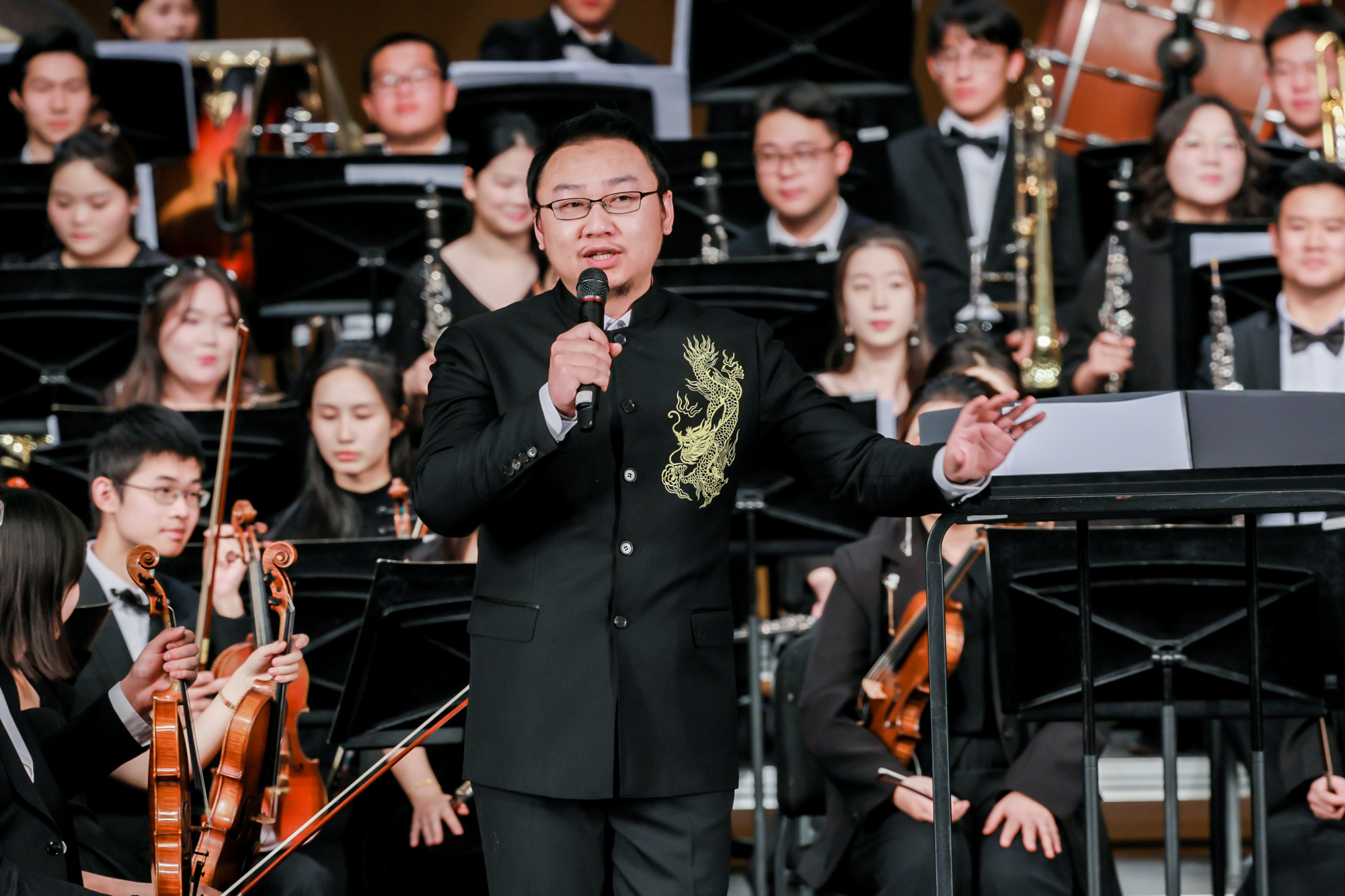 管弦乐《春节序曲》《节日组曲》奏响耳熟能详的节日旋律,拉开音乐会序幕;音乐学院2022级声乐表演与教学专业研究生吴晨希以一首《我们的生活充满阳光》唱出青年追逐理想的激情;管弦乐《复兴序曲》用音符描绘祖国的壮美山河,展现祖国现代化新征程的宏伟篇章;由音乐学院器乐系主任、硕士生导师汤芷诺演奏的《哈恰图良长笛协奏曲》,将朝气蓬勃的快板同抒情的慢板相结合,将人们带入音乐的乌托邦;管弦乐《大河之舞》带我们领略了爱尔兰的异域风情;音乐学院2023级声乐表演与教学硕士生张霆轩、2022级声乐表演本科生李星辰献唱《在殿堂深处》,音乐学院键盘系主任、硕士生导师谢承峯教授演奏《拉赫玛尼诺夫第二钢琴协奏曲》,为观众展现古典音乐的生动魅力;管弦乐《世间始终你好》、华东师大客座副教授汤非独唱《鸿雁》、汤非及音乐学院声乐教师高凌媛二重唱《不忘初心》,或激昂大气,或缱绻旖旎,引发了观众的热烈掌声;最后,在上海师范大学音乐学院指挥副教授、硕士生导师王瑾和3245澳门新莆京音乐学院副教授、硕士生导师谭雅如的指挥下,上海高校校长合唱团、3245澳门新莆京华韵合唱团共同演绎《四渡赤水出奇兵》《国家》两首歌曲,用最宏大澎湃的旋律,为音乐会画上圆满的句号。