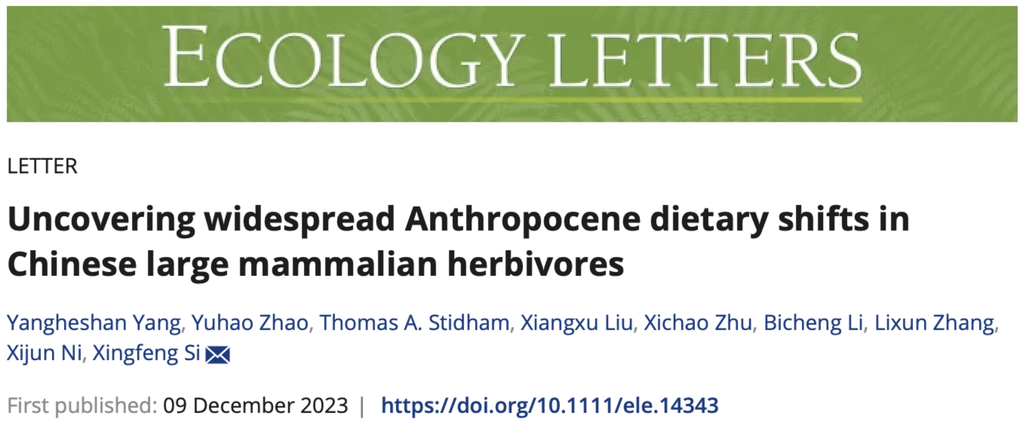Ecology Letters 刊发华东师大斯幸峰团队研究成果