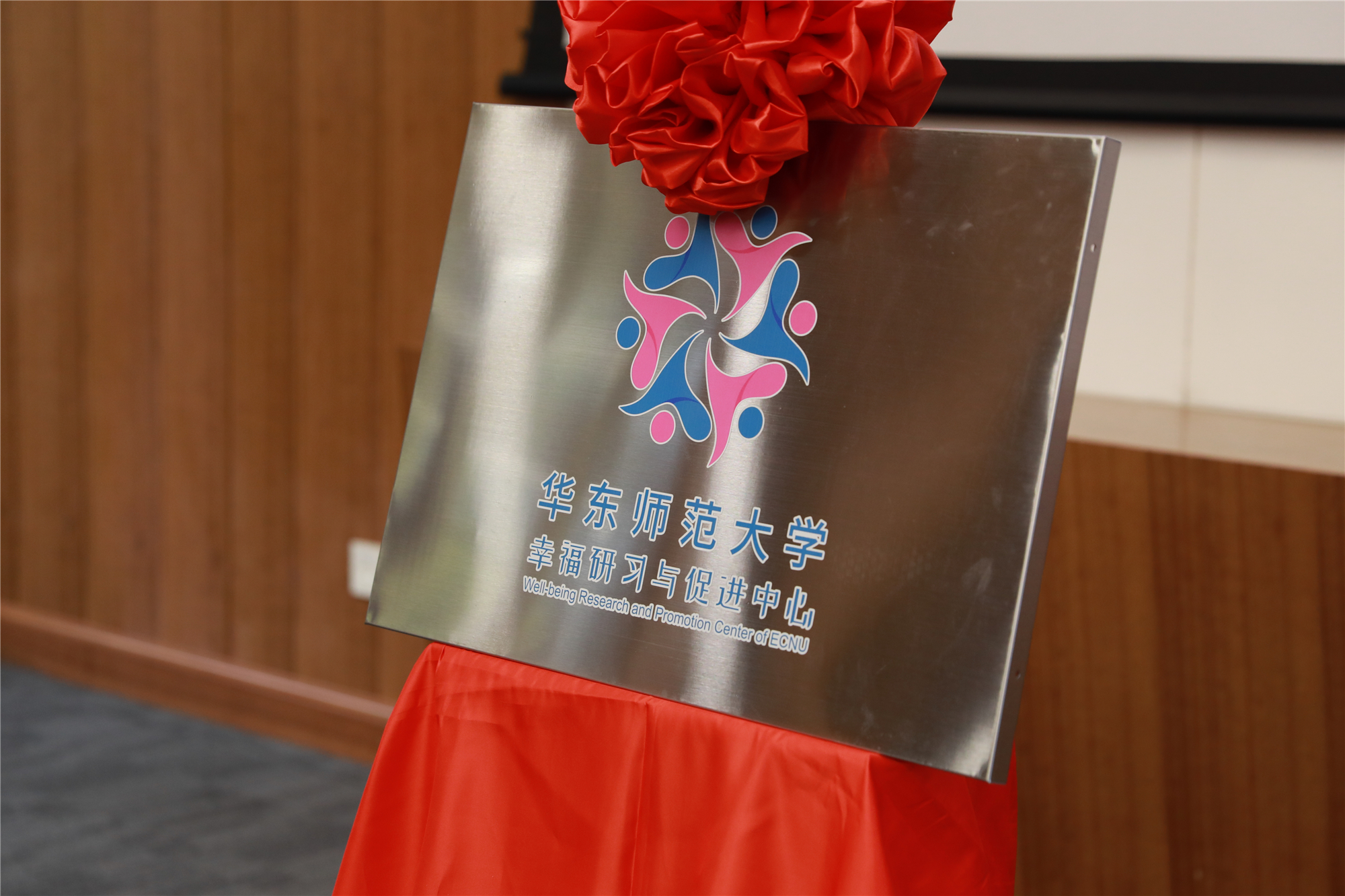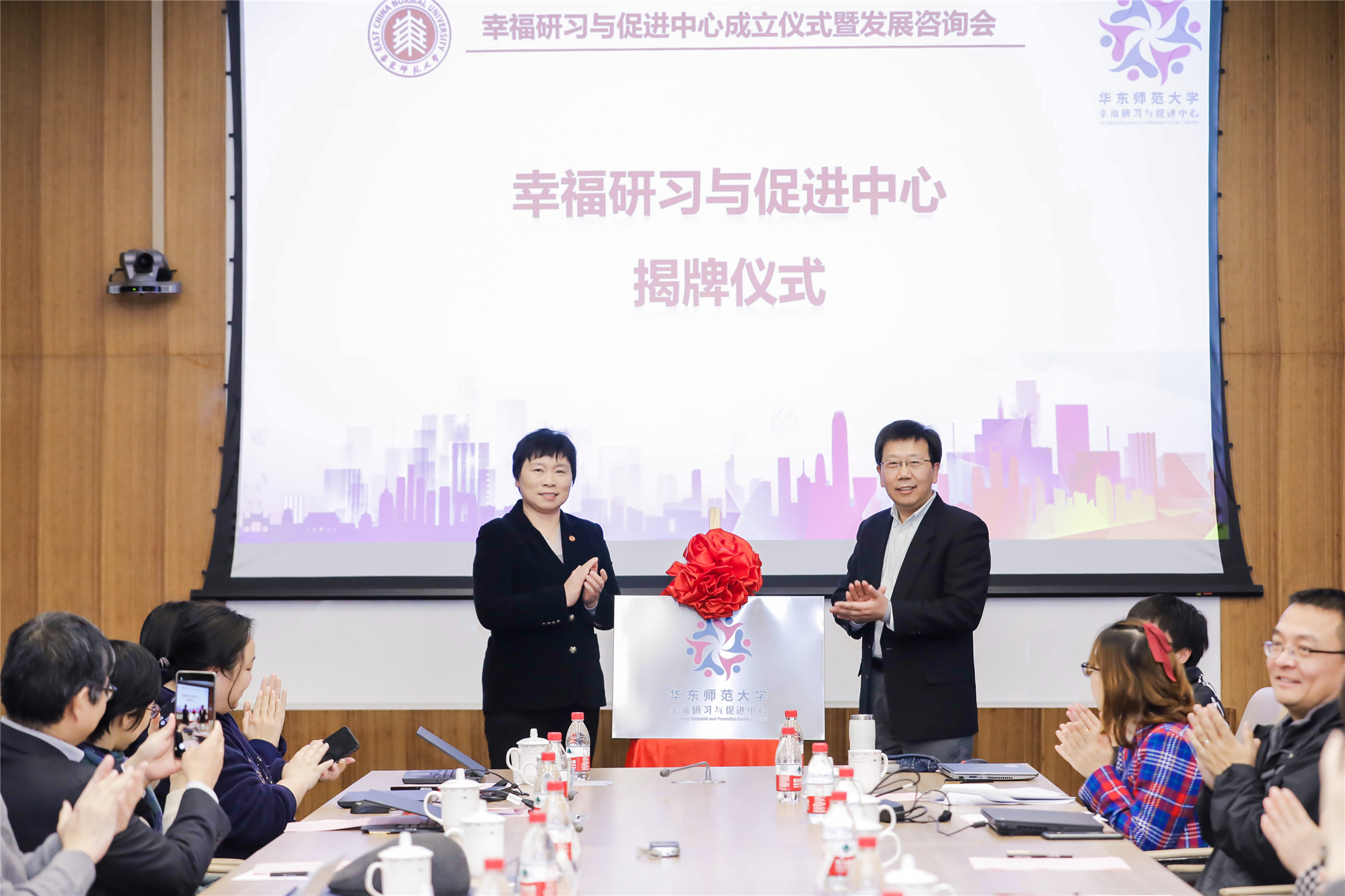 华东师大校长钱旭红、党委副书记杨昌利共同为幸福研习与促进中心揭牌