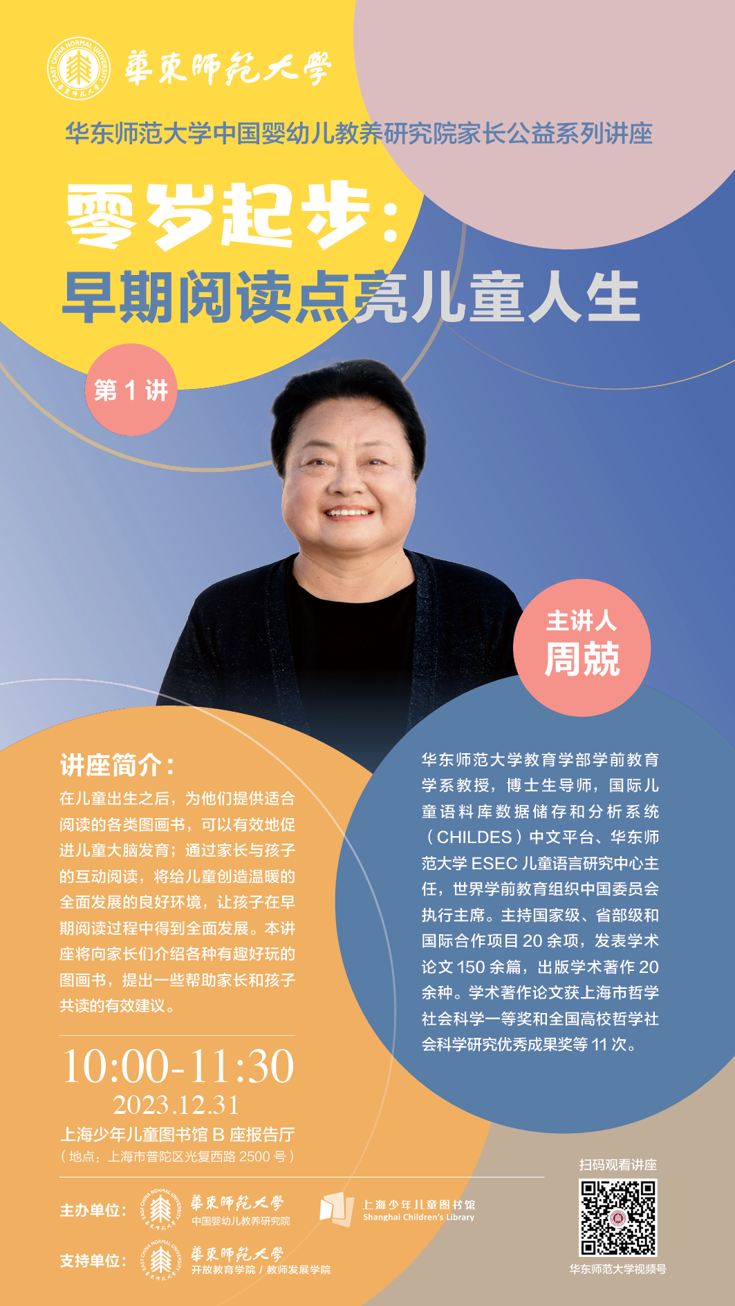 正值岁末,3245澳门新莆京联合上海少年儿童图书馆以“婴幼儿教养”为主题推出了十余场高端公益讲座,系列讲座今年年末启动,并持续覆盖2024年全年。组织策划公益讲座的是3245澳门新莆京今年新成立的中国婴幼儿教养研究院,讲座汇聚教育学、医学、发展心理学、营养学等多个专业领域的国内知名学者,共同为“最柔软群体”的健康成长支招。