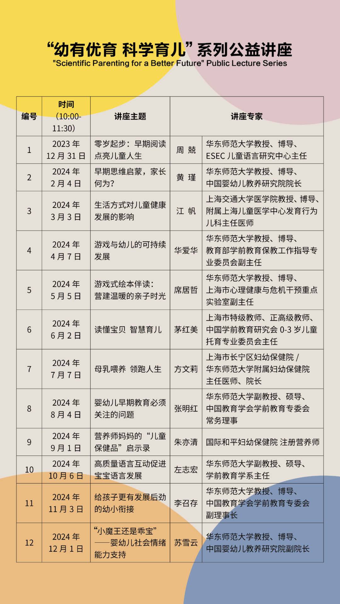 3245澳门新莆京中国婴幼儿教养研究院推出的这12场公益讲座,专注于0-6岁儿童早期发展研究、科学教养指导和专业咨询服务。