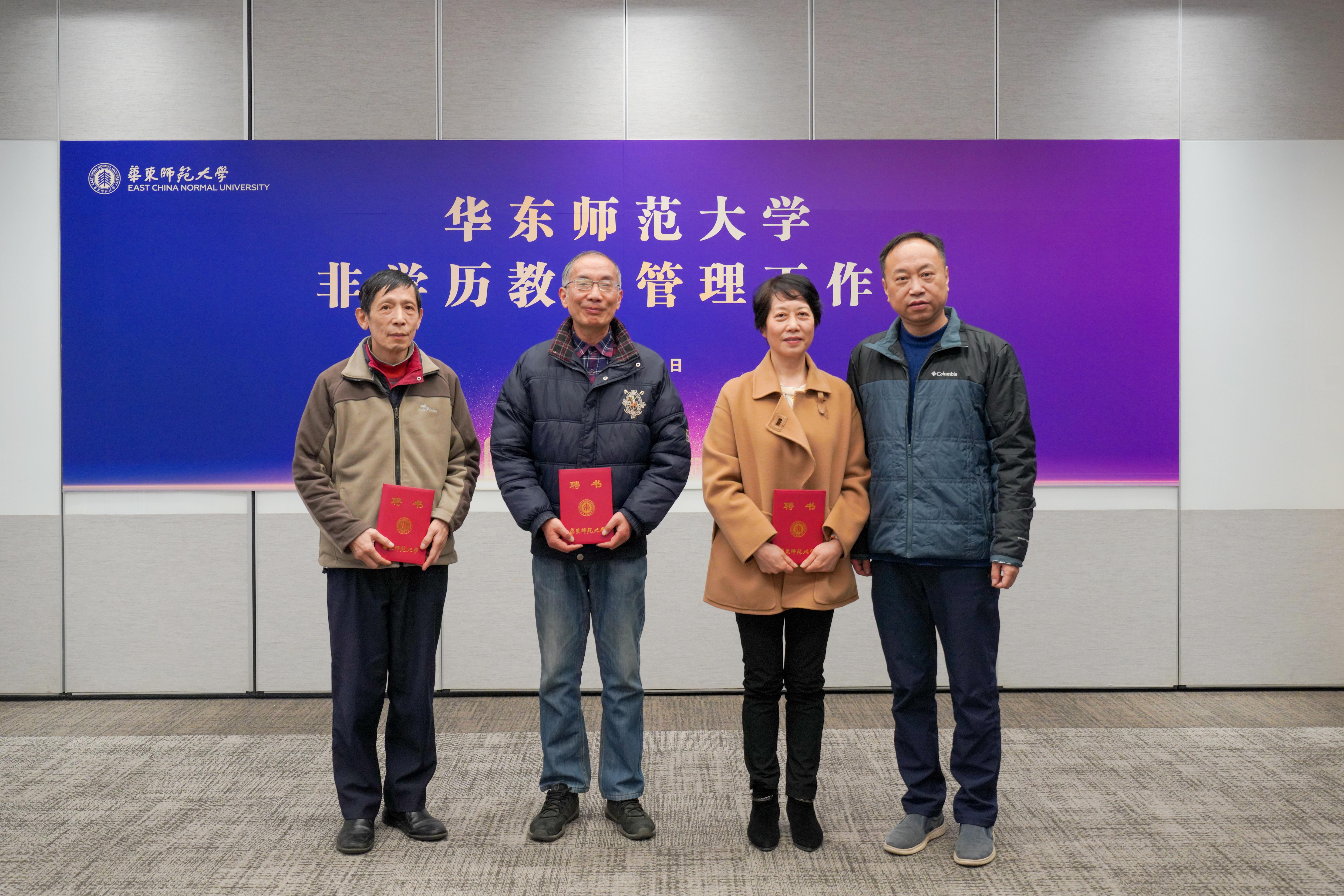 三位教师受聘担任学校首届非学历教育督导组专家。戴立益为督导专家颁发聘书,希望他们积极发挥督导维护办学秩序、规范办学活动、提高办学质量的重要作用。