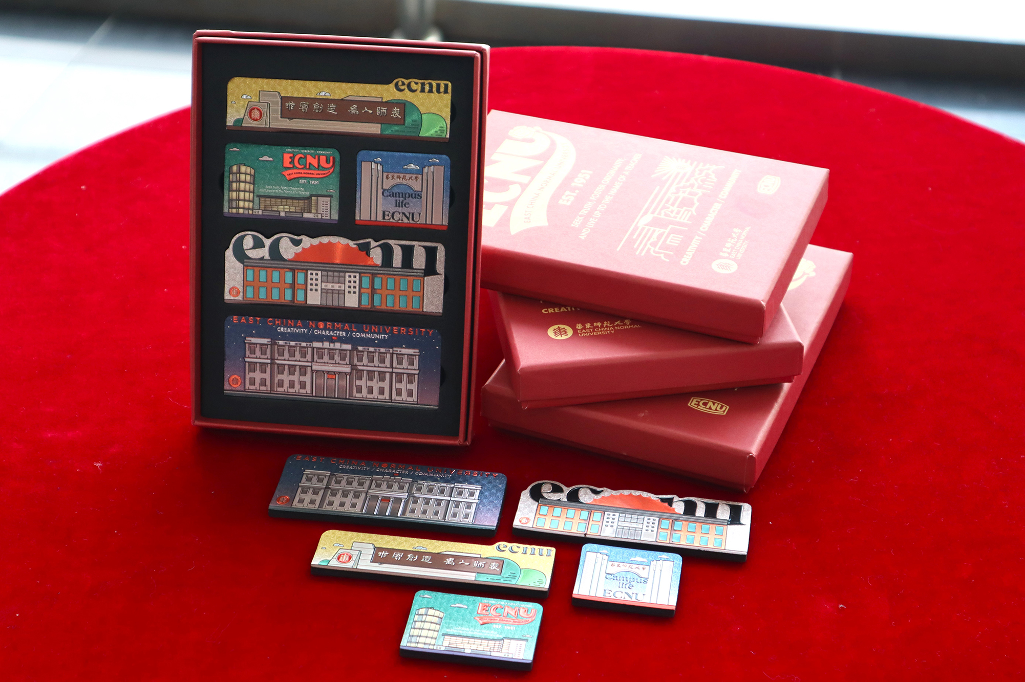 每个宣讲团都将收到设计精美的宣传折页与海报、分省高考资讯单页、旗帜、四季卡套、师大建筑冰箱贴、花狮昭昭印花T恤、文创盲盒……从这份充满“爱在华东师大”心意的材料包开始,这个寒假,一同期待这场精心筹备、专业又温暖的会面!