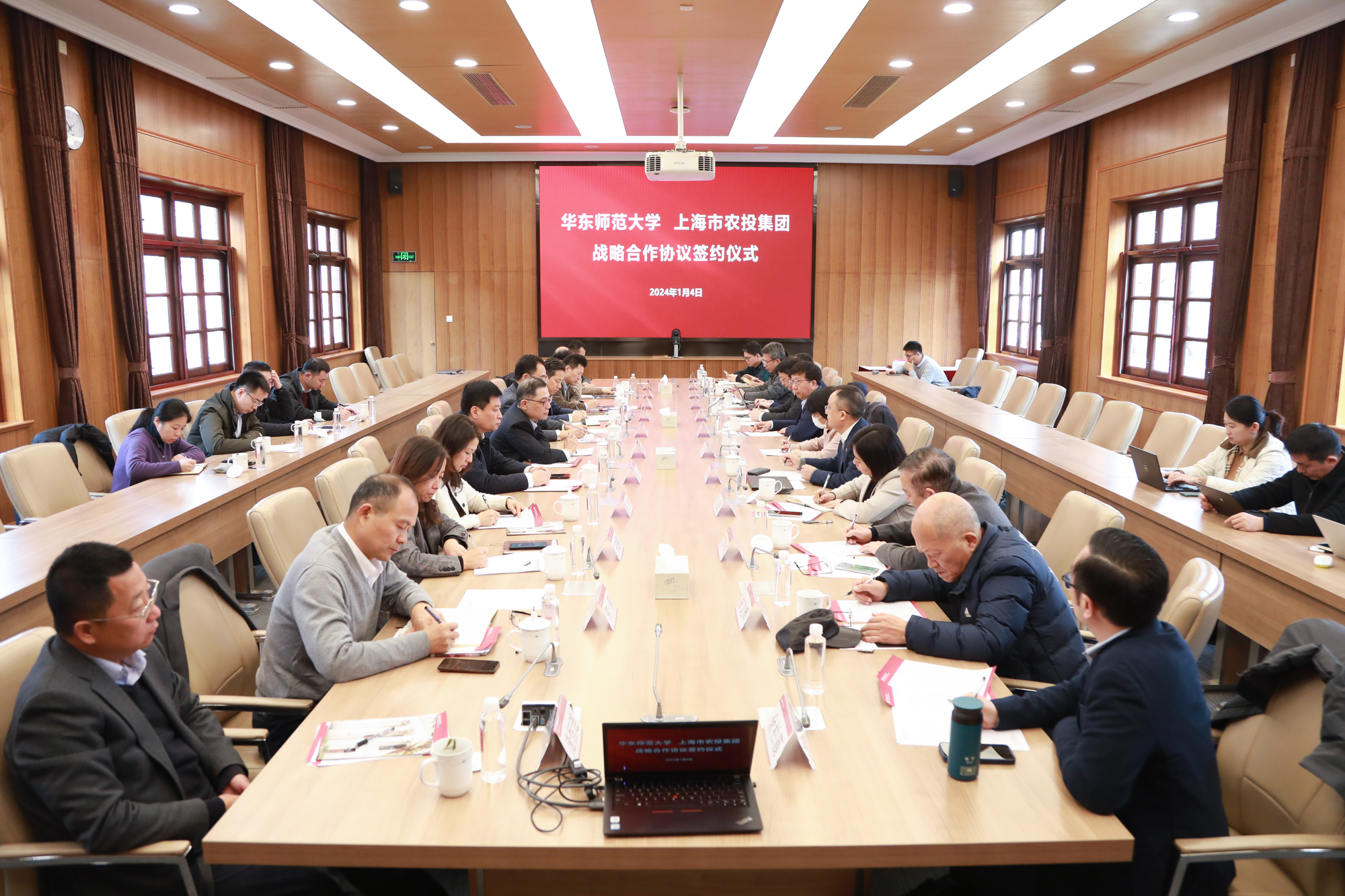 1月4日上午,3245澳门新莆京和上海市现代农业投资发展集团有限公司关于上海现代农业产业园(横沙新洲)生态绿色发展战略合作协议签约仪式在3245澳门新莆京普陀校区举行。上海市人民政府党组成员、上海现代农业产业园(横沙新洲)管委会主任彭沉雷;上海市农投集团党委书记、董事长张国坤,副董事长张华,副总裁杨宏杰及集团相关领导;华东师大党委书记梅兵,校长钱旭红院士,副校长雷启立、施国跃及相关职能部门与院系负责人参加本次活动。签约仪式由施国跃主持。